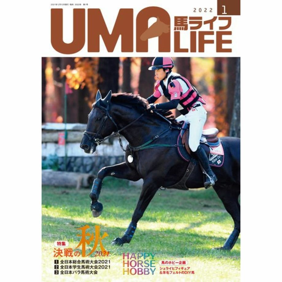 乗馬を始める、楽しむ情報マガジン「UMA LIFE」動物が好き?それなら馬と遊びましょう!乗馬というと何だかチャレンジしづらいイメージがあるかもしれませんが、じつは国内にはおよそ700の乗馬クラブがあるんです。大別すると【1】馬場内でのレッスンがメインのもの【2】海や山、草原を馬でお散歩する《外乗》をメインにしたものの2タイプです。もちろん初めての人向けのプランも充実しています。たとえば4回のレッスンがセットになった体験乗馬教室(15,000円前後)や簡単なレクチャーつきの外乗(1時間10,000円程度)などなど。そうして馬と仲良くなったら、馬と遊ぶ楽しみが膨らみます!どんな風にして遊びましょう?「UMA LIFE」には、馬と過ごす時間が楽しくなるような国内外の情報が満載です。さらにあなたの地域の乗馬クラブがすぐにわかる【乗馬クラブガイド】もついていて、あなたの乗馬ライフをサポートします!・サイズ A4判・出版社 メトロポリタンプレス【内容】●特集1 馬術競技会レポートスペシャル 決戦の秋・第51回 全日本総合馬術大会2021 CCI3*-S / CCI2*-L Yamanashi・全日本学生馬術大会2021 第71回 全日本学生賞典 障害馬術競技大会 第64回 全日本学生賞典 馬場馬術競技大会 第64回 全日本学生賞典 総合馬術競技大会 2021年度全日本学生馬術大会 [3種目総合]・第5回 全日本パラ馬術大会 ●馬のホビー企画・シュライヒ社が馬好きさんへ贈る 手のひらに乗る馬フィギュア!・無ければ自分でつくるのみ! 馬好き女子しゅにまるさんのDIY 羊毛フェルトで馬づくり![クリスマスにぴったりおすすめホビー]・エクイマーケット・ataraina●The Live Horses 雪原に立つ馬 写真=小久保巌義 文=小久保友香 Location=青森県尻屋崎・アタカ●UMAMIMI 情報局・映画「ゴミ箱に愛」 ~馬に誘われ見つけたものは 企画・脚本・監督 モテギ ワコさん・実りの秋、未来へ旅立つ若駒たち 第48回 遠野市乗用馬市場──遠野馬の里 ・光と馬の屋外アミューズメントパーク 大井競馬場の冬季限定イルミネーション“東京メガイルミ” ・夢に向かって日々訓練に全力をつくす! 地方競馬教養センターで行われた 第104期騎手候補生による中間査閲 地方競馬教養センター ・知らないところに行ってみたい! ニュージーランドの中学&高校で、 真のホースマンになることを誓う! 木村慈佑さん ●北海道標茶町【道東ホースタウンプロジェクト】 馬を“架け橋”につながる人たち P029 Vol.2:引退乗用馬 スターバックスと阿部翔太さん●連載・エッセイ 馬耳東風 馬ライフ版 第4回“無条件の愛”で始まる馬との結婚 西村修一・森 裕悟のそんな感じでどうでしょうLesson3 森 裕悟流トレーニング①・「馬(キミ)の名は?」馬名雑学のススメ vol.3ムイトオブリガード さくら^∀^くん・マジック先生の目が10(テン)! レッスン Lesson2「 軽いシート」と「方向変換の基本」 永岡幸子・新連載! PIAFFERで会いましょうVol.1 馬友シリーズ第15回ゲスト 長友満則さん・輝け! みんなのホースセラピー第3回 「障がい者馬術大会」の拡充を目指して 塚本めぐみ・田中雅文の「馬を語ろう」 第2回 アラブ馬の魅力② 田中雅文・馬といっしょに進化しよう! 駈歩への道 第4回 駈歩が継続できない悩み その1 菊澤大助・馬探訪NEO File.152 トップコマンダー●情報コーナー・CLUB GUIDE クラブガイド ・Recruitment 馬のお仕事・リクルート ・UMA LIFE CLUB ・UMA LIFE CROSSWORD PUZZLE ・UMA LIFE Collection ・UMA LIFE Information ・読者プレゼント