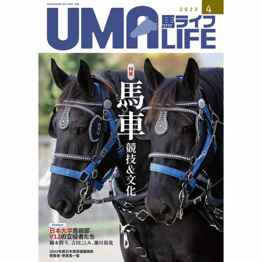 乗馬を始める、楽しむ情報マガジン「UMA LIFE」動物が好き?それなら馬と遊びましょう!乗馬というと何だかチャレンジしづらいイメージがあるかもしれませんが、じつは国内にはおよそ700の乗馬クラブがあるんです。大別すると【1】馬場内でのレッスンがメインのもの【2】海や山、草原を馬でお散歩する《外乗》をメインにしたものの2タイプです。もちろん初めての人向けのプランも充実しています。たとえば4回のレッスンがセットになった体験乗馬教室(15,000円前後)や簡単なレクチャーつきの外乗(1時間10,000円程度)などなど。そうして馬と仲良くなったら、馬と遊ぶ楽しみが膨らみます!どんな風にして遊びましょう?「UMA LIFE」には、馬と過ごす時間が楽しくなるような国内外の情報が満載です。さらにあなたの地域の乗馬クラブがすぐにわかる【乗馬クラブガイド】もついていて、あなたの乗馬ライフをサポートします!・サイズ A4判・出版社 メトロポリタンプレス【内容】●特集「馬車」競技&文化・馬車競技──ドライヴィング /パラドライヴィング・馬車文化──イギリスの馬と馬車・馬車とゆかりのある街 横浜馬車道●The Live Horses あの日のペルシュロン 写真=太田宏昭 Location=米国・アイオワ州デモイン(2018世界ペルシュロン大会)●大会レポート V12 日本大学馬術部V12 の立役者たち 楠本將斗、吉田ことみ、瀬川裕哉●UMAMIMI情報局・2022年に名を刻んだ人馬に拍手! 令和4年度 日本馬術連盟表彰式・HORSE LOVER kc. Ltd. Presents「Benjamin Werndl Clinic」参加者コメントには「、最高!」の声も・バランスを改善し、人も馬もグンとよくなる! センタード・ライディング ペギー・ブラウン講習会・馬に優しい馬具の製作に携わること20年! シルビア・エディックスホーヴェンさん・パラ馬術 講演プログラム 「Para Dre Plus-」がスタート!・優しく安全な日本在来馬で楽しむウエスタン! ─和種馬ホースランド (大阪)・サラブレッドとドイツ馬で、 能力の高い競技馬をつくる夢 ─佐藤有美佳さん・賞金総額1000万円! 競技とエンターテインメントが融合した Two Hearts X’mas Horse Show●好評連載 新連載2回目!・ホースクリニシャン宮田朋典の乗馬よわよわさんのためのサプリ 第2 回 犬にはしていて、馬にしていない大きな落とし穴 宮田朋典・魅惑のスペイン馬紀行Vol.4 王立アンダルシア馬術学校ツアー(前編) YURIE KONO・エッセイ 馬耳東風 馬ライフ版 第19回 諸悪莫作 西村修一・連載マンガ 与那国馬のココちゃん #7 ハミをくわえたい! 吉田 望・馬と人との安全を科学する!? SAFETY FIRST+ 第7 回 落馬時は手綱を離さない② 菊澤大助・初級インストラクターのための指南書「教えて! ○○さん!」 Vol.12「ビギナーの練習での注意点」 エキスパート 新倉章太さん・「馬(キミ)の名は?」馬名雑学のススメ vol.18 ファントムシーフ さくら^∀^くん・アロマテラピー for 愛馬 第10 回 馬の心を癒す花の女王ローズオットー 大森かずえ・輝け! みんなのホースセラピー第18回 パラスポーツの普及と現状について 塚本めぐみ・田中雅文の「馬を語ろう」 第17 回 パルテノン神殿を飾った馬たち 田中雅文・森 裕悟のそんな感じでどうでしょう Lesson17 回転運動①・馬探訪NEO File.167 ダイタクバートラム・UMA LIFE CLUB ・UMA LIFE CROSSWORD PUZZLE ・CLUB GUIDE クラブガイド ・Recruitment 馬のお仕事・リクルート ・UMA LIFE Collection ・UMA LIFE Information ・読者プレゼント