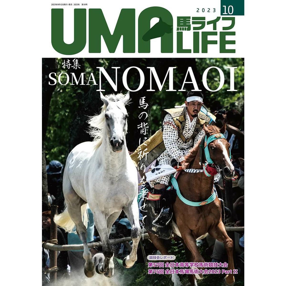 乗馬を始める、楽しむ情報マガジン「UMA LIFE」動物が好き?それなら馬と遊びましょう!乗馬というと何だかチャレンジしづらいイメージがあるかもしれませんが、じつは国内にはおよそ700の乗馬クラブがあるんです。大別すると【1】馬場内でのレッスンがメインのもの【2】海や山、草原を馬でお散歩する《外乗》をメインにしたものの2タイプです。もちろん初めての人向けのプランも充実しています。たとえば4回のレッスンがセットになった体験乗馬教室(15,000円前後)や簡単なレクチャーつきの外乗(1時間10,000円程度)などなど。そうして馬と仲良くなったら、馬と遊ぶ楽しみが膨らみます!どんな風にして遊びましょう?「UMA LIFE」には、馬と過ごす時間が楽しくなるような国内外の情報が満載です。さらにあなたの地域の乗馬クラブがすぐにわかる【乗馬クラブガイド】もついていて、あなたの乗馬ライフをサポートします!・サイズ A4判・出版社 メトロポリタンプレス【内容】●巻頭特集相馬野馬追SOMANOMAOI馬の背に祈りを乗せて─◆Prologue&MAP ◆10 世紀-20 世紀 ◆21 世紀、そして2011 年3月11日 ◆2023 年7月28日─祭り前夜 ◆2023 年7月29日─出陣・宵乗り ◆2023 年7月30日─本祭り ◆2023 年7月31日─野馬懸 ◆未来へ ●The Live Horses ひと息、つく写真=高草 操Location=岩手県遠野市●競技会レポート・第57回 全日本高等学校馬術競技大会 ・第75回 全日本馬場馬術大会2023 PartⅡ ●UMAMIMI情報局・もう一つのオリンピックスペシャルオリンピックスWG(ワールドゲームズ)の馬術競技に日本が初参加! ・悪天候でも練習ができる喜びインドアアリーナオープン!─ESJ飯田本校 ・第105期騎手候補生たちが本橋孝太騎手と模擬レースを走る!─地方競馬教養センター ・「煌サラブレッド2023」10月開催─第8回競馬写真家写真展 ●好評連載・エッセイ 馬耳東風 馬ライフ版 第25回賞を受くるべき様に走れ 西村修一・ホースクリニシャン宮田朋典の乗馬よわよわさんのためのサプリ第8 回 洗い場での安全確保としつけ 宮田朋典・連載マンガ 与那国馬のココちゃん#13ココちゃんが寝転ぶまでの長い道のり その4 吉田 望・馬と人との安全を科学する!? SAFETY FIRST+ 第13 回走られた後の急停止に備える② 菊澤大助・魅惑のスペイン馬紀行 Vol.10マドリード・ホース・ウィークで、馬文化を満喫! YURIE KONO・PIAFFERでお会いしましょう Vol.17馬術選手・関係者たちによる豪華馬術トークイベント開催!・初級インストラクターのための指南書「教えて! ○○さん!」Vol.18「鞍の選び方」 エキスパート 新倉章太さん・「馬(キミ)の名は?」馬名雑学のススメvol.24 プログノーシス さくら^∀^くん・アロマテラピー for 愛馬 第13 回馬のアロマテラピーに応用したい植物油について 大森かずえ・森 裕悟のそんな感じでどうでしょう LESSON 23人気のあった3ジャンルを解説・輝け! みんなのホースセラピー 第24回クレール号が教えてくれる、馬たちの生涯 塚本めぐみ・田中雅文の「馬を語ろう」 第23 回マルチデイライド3 アイルランド・コネマラトレイル 田中雅文・馬探訪NEO File.173 フロリダパンサーUMA LIFE CLUBUMA LIFE CROSSWORD PUZZLECLUB GUIDE クラブガイドRecruitment 馬のお仕事・リクルートUMA LIFE CollectionUMA LIFE Information読者プレゼント