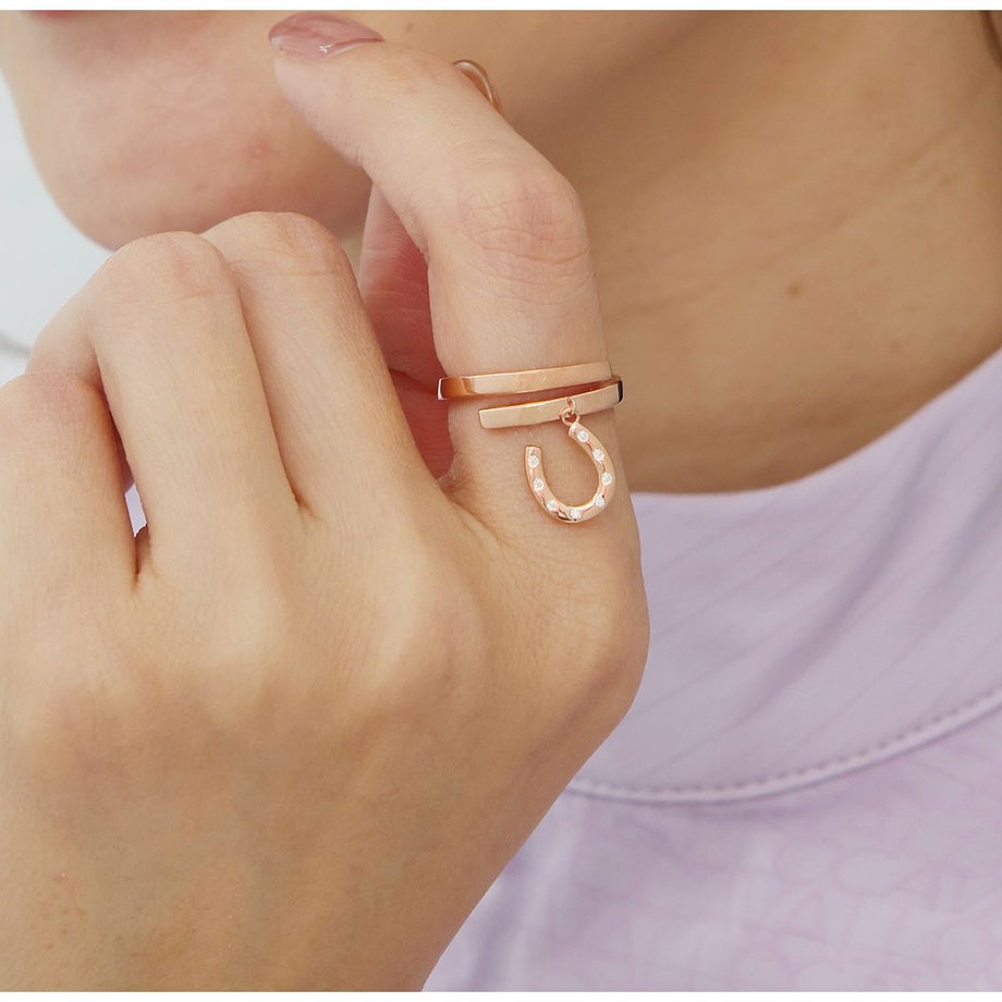 ・幸運をもたらす馬蹄型チャームがゆれるシルバーリング。・ラインストーンをあしらったホースシューのチャームがポイント。・ほどよいボリュームで手元をエレガントに演出します。・ライフスタイルにも大好きな乗馬のモチーフを取り入れたい方に最適。・ベルベット調の巾着に入れてお届けします。 (ギフトボックスをお選びの場合巾着は付属しません)