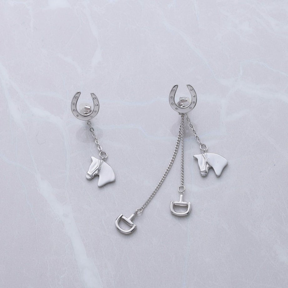 ・4通りのデザインが楽しめるユニークなホースチャーム 4way ピアス。・馬蹄型のピアスに馬モチーフのチャームとハミモチーフのチャームがセットになっています。・チャームを自在に付け替えて、4wayで使用できるピアス。・その日の気分やコーデに合わせてアレンジを楽しめます。・乗馬や馬が大好きな方へのプレゼントにも最適です。・ベルベット調の巾着に入れてお届けします。 (ギフトボックスをお選びの場合巾着は付属しません)