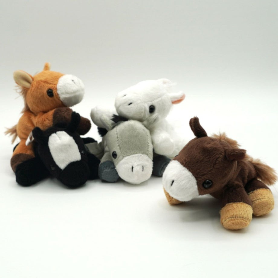 ・まんまるな瞳と、ふっくらした鼻先が愛らしいデザインです。・どこにでも連れて行けるコンパクトなサイズ感です。・並べるとさらに可愛らしさが引き立ちます。・やわらかく滑らかな手触り。・棚やデスクに飾って楽しめます。・馬好きの方やお子様へのギフトとして喜ばれます。