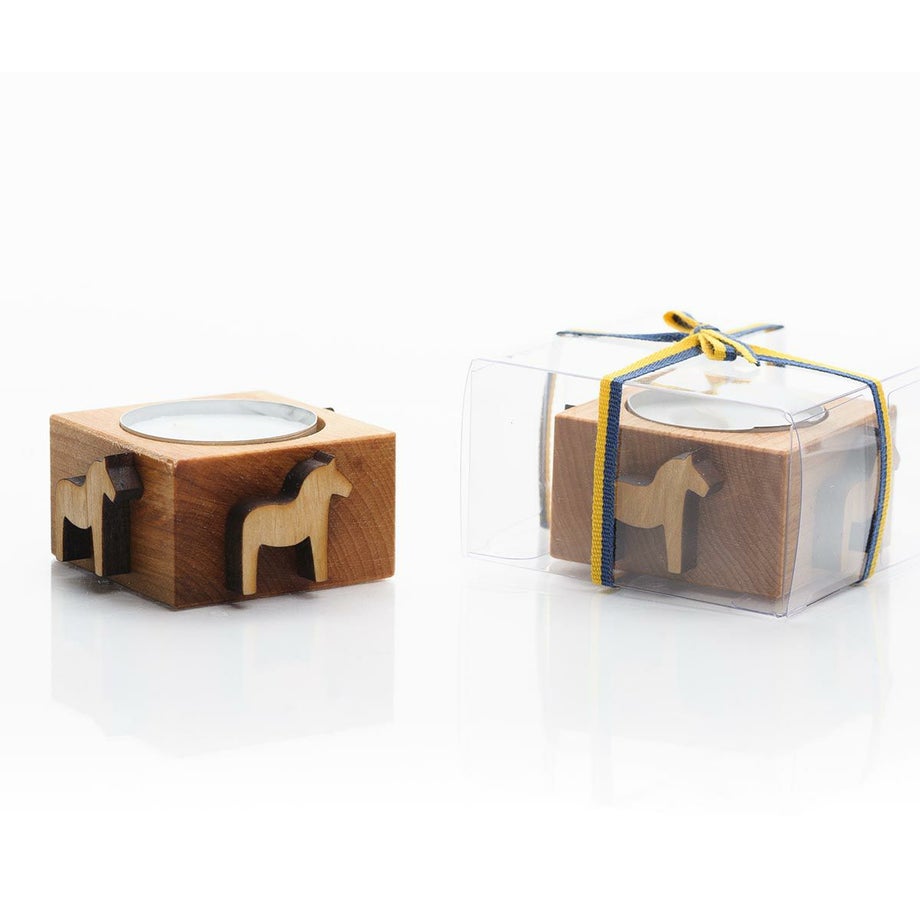 ・心温まるかわいい木製のティーキャンドルホルダー。・しあわせを運んできてくれるダーラナホースのデザインです。・ラッピングされているのでプレゼントにもオススメです。