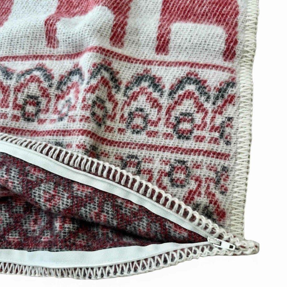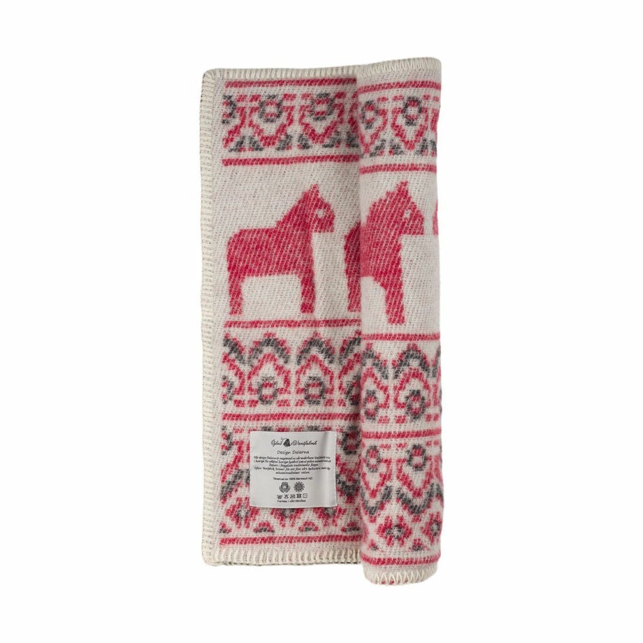 ・スウェーデンの伝統的な馬「ダーラナホース」をモチーフにした北欧デザイン。・馬のシルエットと幾何学模様を組み合わせた、象徴的なパターン構成。・レッドは華やかで温もりのある印象、ブルーは爽やかで落ち着いた雰囲気。・ソファやベッドに映える、インテリアのアクセントアイテム。・スウェーデン製ならではの繊細な織りと丁寧な仕上げ。・ニュージーランド産メリノウール100%による、やさしい肌触りと通気性。・PET FRIENDLY (ペットフレンドリー) のマークが付いており、ペットにも配慮した天然素材を使用。・メリノウールは抗菌・防臭作用がありペット特有のニオイがこもりにくく、衛生的に保てます。・季節を問わず使える、軽やかで快適な素材感。・同柄のブランケットやスローケットと合わせてお楽しみいただけます。「オイブロ・バントファブリーク」1984年創業、スウェーデンのオイブロ家が営む家族経営のウール手袋靴下工場です。上質なメリノウール素材にこだわり、丁寧な製造を行っています。ほっこり優しいデザインは、スウェーデンの暮らしや自然、伝統文化からインスピレーションをうけて生まれました。丁寧に作られたぬくもりあふれるニット、スウェーデンからお届けします。