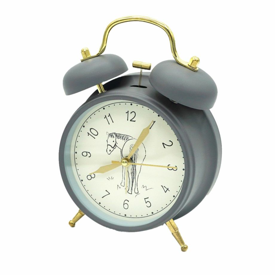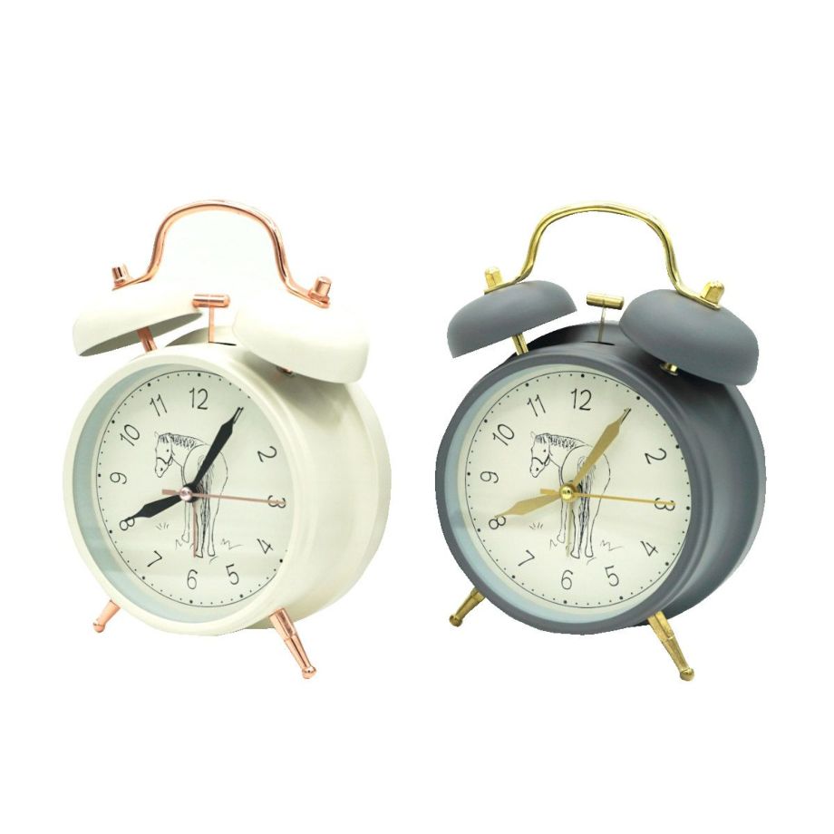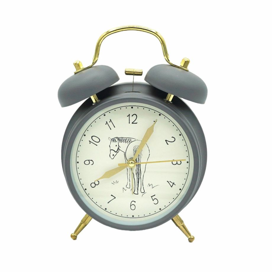 ・見る人を笑顔にしてくれる振り返る馬「Nico」の置き時計。・人気上昇中のNicoブランド。・クリームとグレーの2色から選べます。・落ち着いた色味で、クラシックなデザインの目覚まし置き時計はどんなインテリアにもマッチします。・夜中に目が覚めて時間の確認ができる、柔らかな光のバックライト付き。 (ボタンを押している間だけライトが点灯します)・チクタク音がしない静音仕様なので、睡眠を妨げません。・大き目の文字で遠くからでも時間の確認ができます。・レトロ目覚まし時計ならではのしっかりと聞こえるベル音がシャキッとした目覚めに導きます。・乗馬愛好家や新生活をスタートする方へのギフトにも最適。・単3形乾電池1本を使用します。(電池は付属しません)【Nico/ニコ】かわいい馬の姿に見た人みんながニコっと笑顔になれる。Nicoをあなたの日常に。