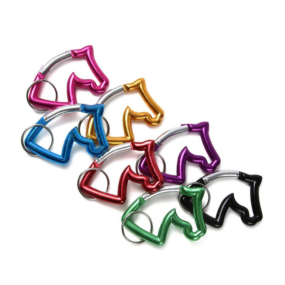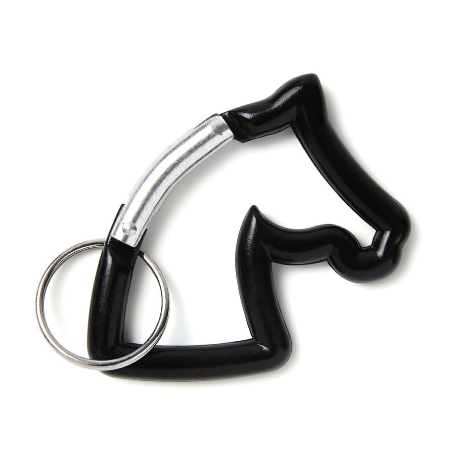 ・馬の頭の形をしたかわいいカラビナです。・バッグに吊るしてさりげなく馬アピールしたり、鞍箱やお手入れ道具箱につけて目印にしたり。使い方は自由自在。・馬好きが喜ぶアイテムだから、ちょっとしたギフトにもおすすめ。・軽量アルミ製で重さが気にならないのもGOOD!
