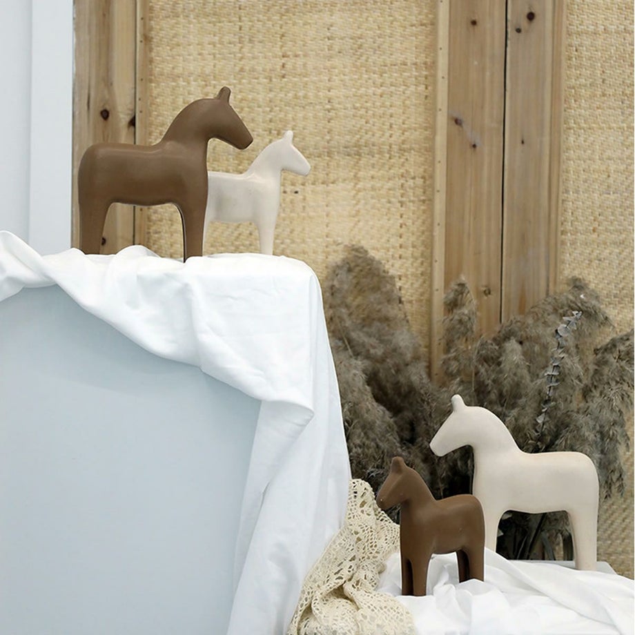 余った木材を使って父親が子供のおもちゃを作ったものが起源と言われている、素朴な木彫りの馬の置物。