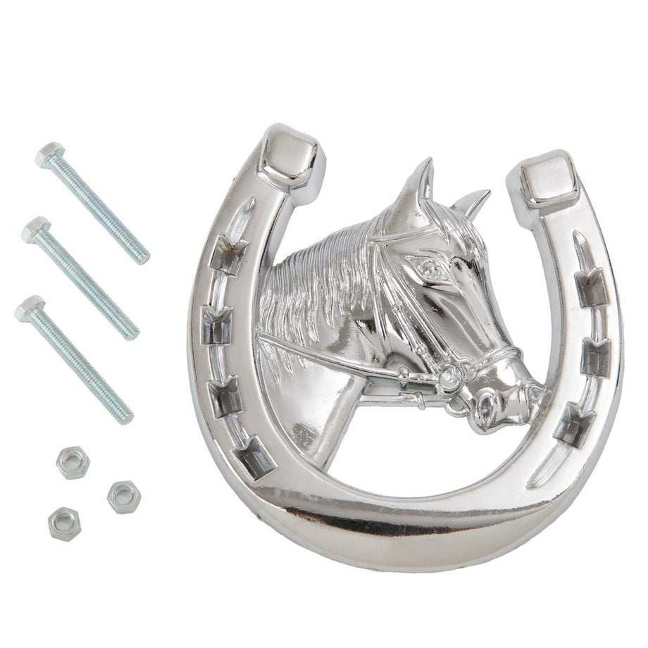 ・ラッキーアイテム【ホースシュー(蹄鉄)】をモチーフにした車用のアクセサリーです。・蹄鉄は幸運を呼び込んだり交通安全お守りの効果があると言われています。・ラジエターグリルにねじで取り付けるタイプのエンブレム。・蹄鉄+馬モチーフのエンブレムは馬好きにはたまりません。プレゼントにオススメ!・付属品 ボルトナット各3個・車種によっては取り付け出来ない場合があります。