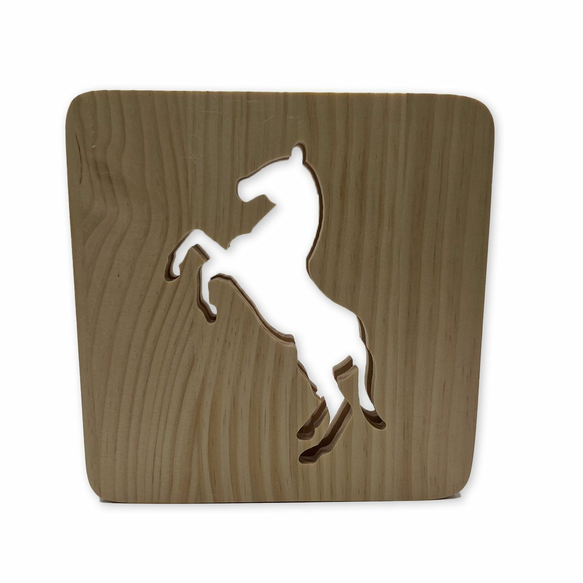 ・馬のシルエットがやさしく光るナチュラル&モダンな雰囲気のウッドホースライト。・木目や色味などは一つ一つ異なり、天然の素材ならではの味わいが楽しめます。・切り抜かれた馬のシルエットの部分が光ります。・あたたかみのある木のよさと、モダンなデザインが融合したライト。・USB電源なのでモバイルバッテリーと組み合わせて色々な空間でご利用いただけます。
