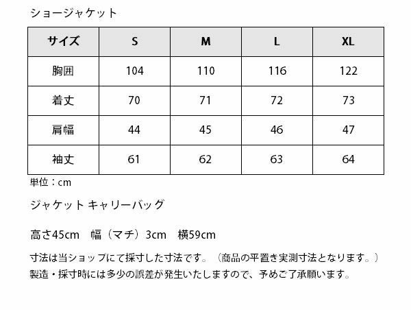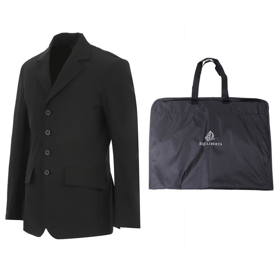 【ショージャケット】・ハイスペックなのにコスパも最高な乗馬用のソフトシェルショージャケット。・ストレッチ性があり、フィット感がいいのはもちろん、UPF50+、撥水機能なども備え、全天候下でのパフォーマンスを向上。・シンプルでクラシックな美しいシルエットにこだわっています。・日本人向けの4サイズ展開なので、フィットするものをお選びいただけます。・ポケット:フロント2ヶ所。・袖口にボタンがないタイプなのでボタンの干渉や落下の心配がありません。・動きやすさを追求肩口から袖が前方に流れているデザインを採用し、騎乗時の腕・肩周りの窮屈さを軽減しました。縦にも横にも伸びる2WAYストレッチは、動きやすくてフィット感抜群です。・オールシーズン快適な着心地このアイテムのために開発された独自の高機能ソフトシェルファブリックを採用。雨や雪の日には撥水、寒い冬でも防風で体温を保持、暑い夏でも通気性を確保するオールシーズン対応。・撥水機能多少の雨や雪なら気にせず騎乗できます。・透湿湿気を外に逃がす生地なので汗をかいても快適。・防風防風効果のある生地だから、冬場の騎乗でもしっかり保温されます。・防汚、防花粉汚れにくい生地でメンテナンスもカンタンです。ご家庭での洗濯もOK。花粉もつきにくいので花粉症の方にもおすすめ。・UVカットUPF50+の紫外線ガード機能。馬場の日差しから肌を守ります。・騎乗に最適化されたシルエット生地の特性を考慮して熟練パタンナーがデザインしたショージャケットは、姿勢の美しさと動きやすさを両立しました。・素材へのこだわり使用する素材は国内の専門機関で百貨店並みの厳しい試験に合格したものを採用しました。【ジャケットキャリーバッグ】・ジャケットから丈の長い燕尾服まで収納できるガーメントバッグ。・三つ折りなのでコンパクト。試合場への持ち運びも楽々。・表側の丈夫なポリエステルが衣類を保護。裏側の不織布は通気性抜群で湿気を逃がします。・2層構造の生地が大事な衣類を最適な状態に保ちます。持ち運びにも、保管にも。マルチに使える便利バッグ。・専用ハンガー付き。