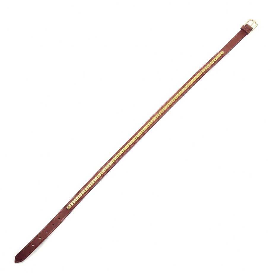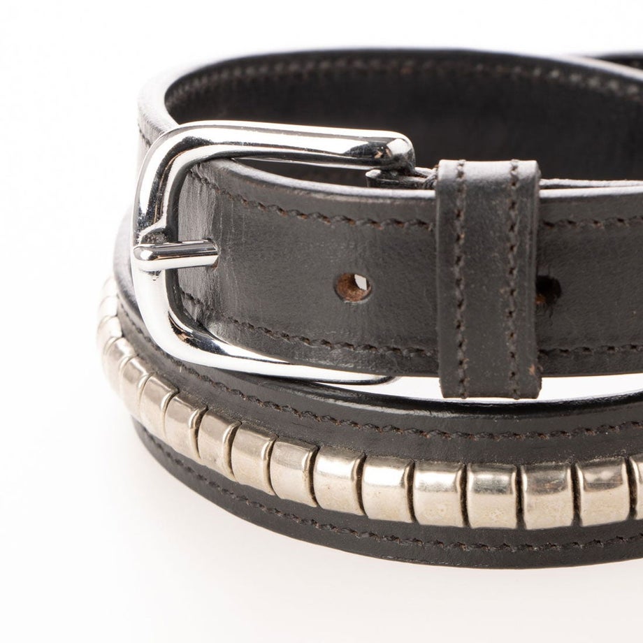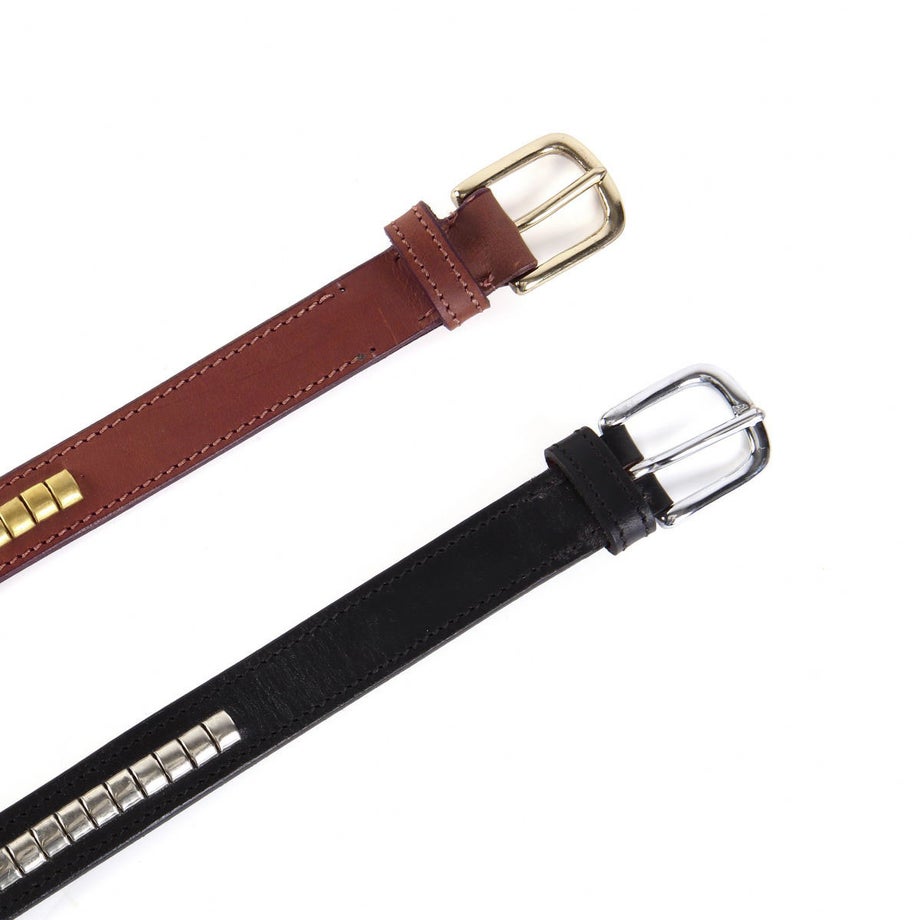乗馬ベルトの定番、クリンチャーベルトです。額革の飾りをモチーフにした伝統のデザイン。丈夫な牛革製ベルトだから、長くお使い頂けます。乗馬以外の普段使いでも、違和感無く使えるデザインです。