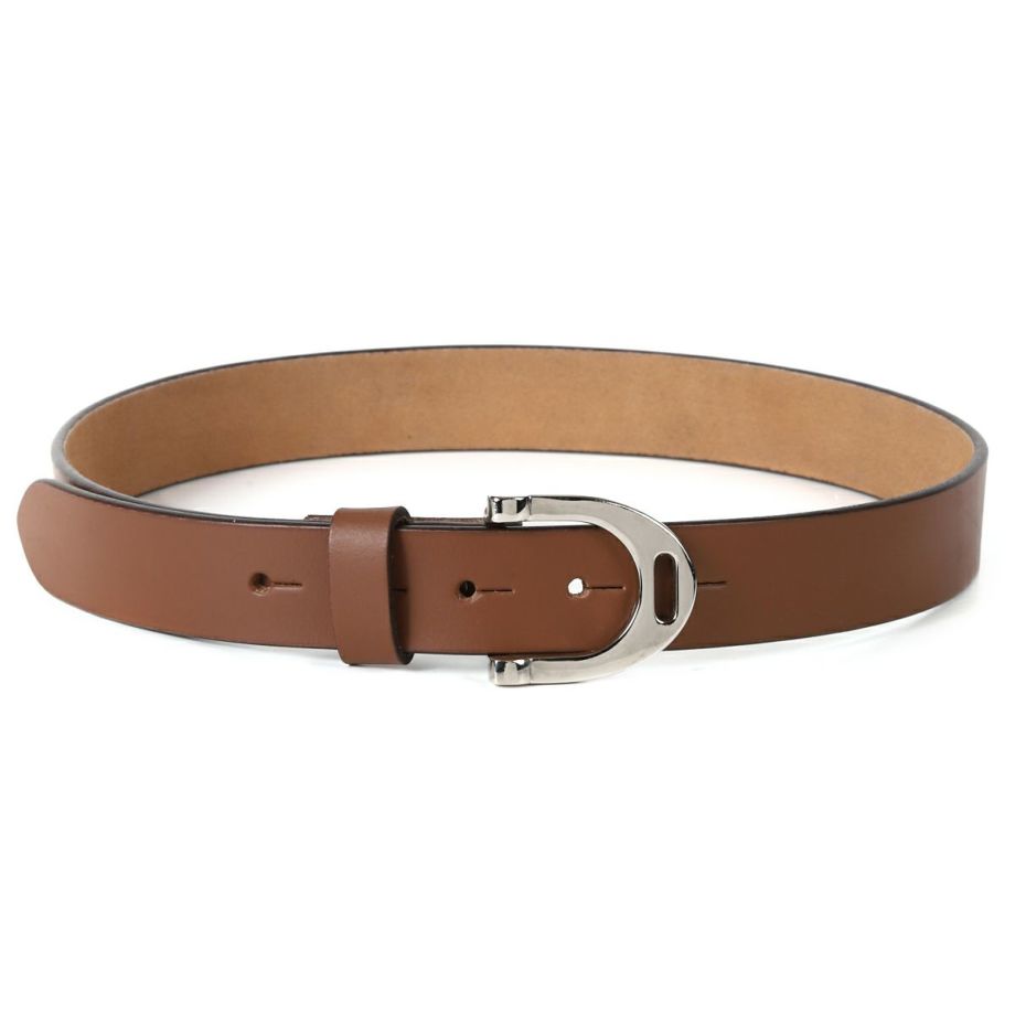 鐙(あぶみ)をモチーフにしたバックルが目を引く本革ベルト。丈夫な牛革製ベルトだから、長くお使い頂けます。男性、女性、お子様まで幅広いサイズラインナップが揃っています。乗馬コーデにぴったりのベルトですが、さりげなく乗馬を取り入れたタウンコーデにもおすすめです。