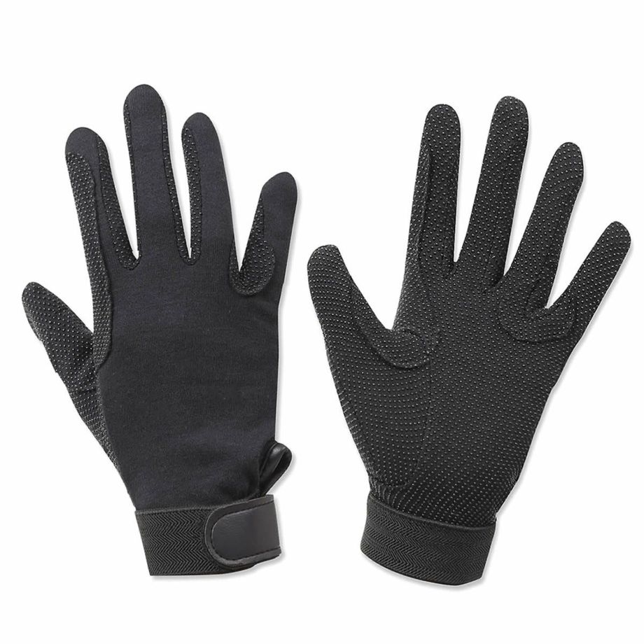 ・当店オリジナル商品。・やや薄手のコットンニットで作られたお手頃価格のシンプルな乗馬グローブ。・手の平全体に滑り止めゴムピンプル(ゴムの粒)が付いています。・工場からの直接仕入れで、品質はそのままにこのお値段を実現しました。・乗馬ビギナーや、耐久性にはこだわらずお値段重視の方におすすめです。