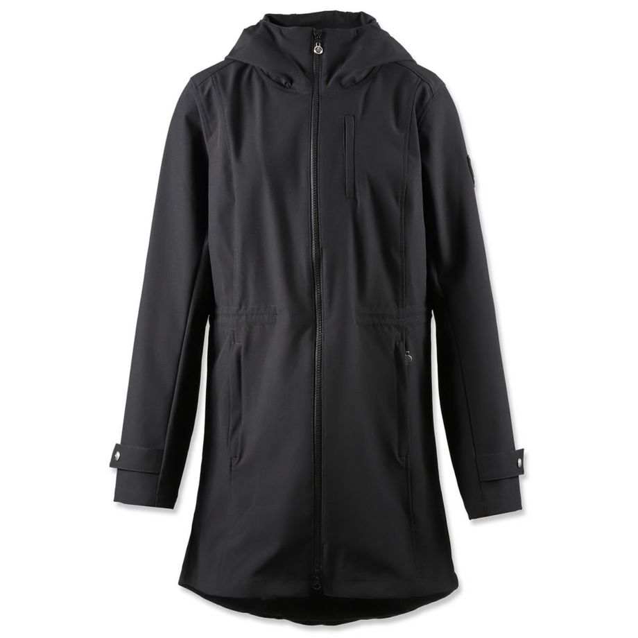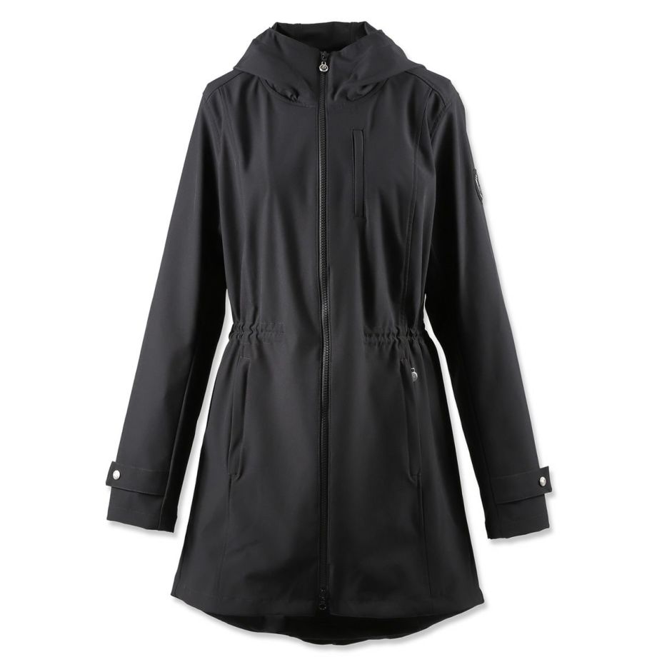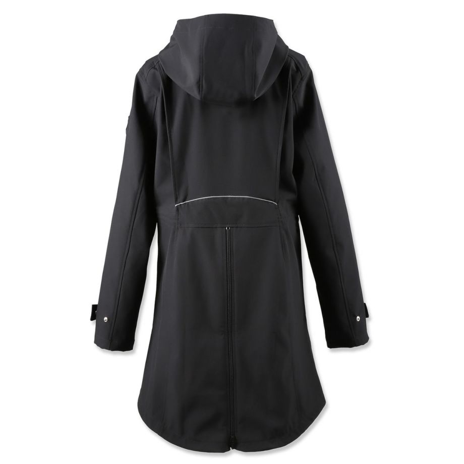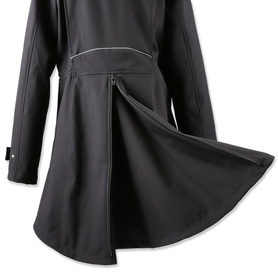 伸縮性が高く動きやすい生地とぴったりフィットするデザインは、立ち姿も騎乗姿も優雅に映えさせる逸品。撥水・透湿・防風・防汚・防花粉・UVカットなど、高機能で実用性も抜群です。・美しいシルエット横から見るとまるで燕尾服のように裾がすらりと流れ、正面からみるとフレアコートのように裾が広がる優雅なシルエット。デザイナーがこだわり抜いて仕上げたデザインです。・動きやすさを追求2WAYストレッチ生地なので動きやすく、裏地がなく軽量で疲れにくいです。前丈は膝上あたりまでの長さで足が動かしやすく、前後のファスナーを開ければ騎乗時も裾が邪魔になりません。・高機能生地2年以上の歳月をかけて開発された独自の高機能ソフトシェルファブリックを採用。雨の日には撥水、寒い冬でも防風で体温を保持、汗をかいても透湿性を確保。真夏以外は着用できるオールラウンダーな便利アイテムです。・撥水多少の雨や雪なら気にせず騎乗できます。・透湿湿気を外に逃がす生地なので汗をかいても快適。・防風防風効果のある生地だから、冬場の騎乗でもしっかり保温されます。・防汚、防花粉汚れにくい生地でメンテナンスもらくちん。ご家庭での洗濯もOK。花粉もつきにくいので花粉症の方にもおすすめです。・UVカットUPF50+の紫外線ガード機能。馬場の日差しから肌を守ります。・様々な便利機能内側のゴムベルトでウエストを絞り込むことができます。袖口のボタンで微調整ができます。大きく開くジップ式のバックスリット。スリット内側にも生地がついているので、外に出して雨から鞍をカバーすることができます。左右のジッパー付きポケットの他、左胸に縦ファスナーのミニポケットがあり、カギなどの小物入れに便利です。・高級感のあるパーツ左腕のEQULIBERTAロゴが入ったワッペンや、刻印のあるボタン、ジップ金具など高級感のあるパーツがさりげなく使われています。後ろのウエストラインを装飾するライトグレーのパイピングはうっすらと光を反射して何気に目を引きます。・乗馬以外にもサッと着れて軽くて高機能なアウターなので、乗馬以外の用途にもおすすめ。キャンプ、ロードバイク、ゴルフなどのアウトドアはもちろん、上品なデザインなので通勤などの普段使いにもおすすめです。