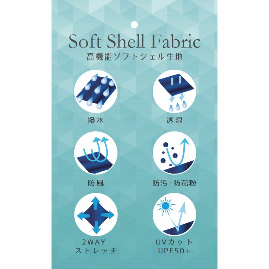 ・アイロンの際はあて布を使用。(ドライクリーニングの場合)・単品洗いが望ましい。万一他の物と一緒に洗う場合は、必ずネットを使用し、短時間処理・ソープの残留は、はっ水性を低下させるため、極力ソープは使用しない。使用した場合はすすぎを十分に行い、ソープが残らないようにする。・タンブル乾燥は、うら返して低温処理(50℃以下)。・生地表面のはっ水加工は、くり返しクリーニングや摩擦により性能が低下するため、はっ水スプレーを使用する。