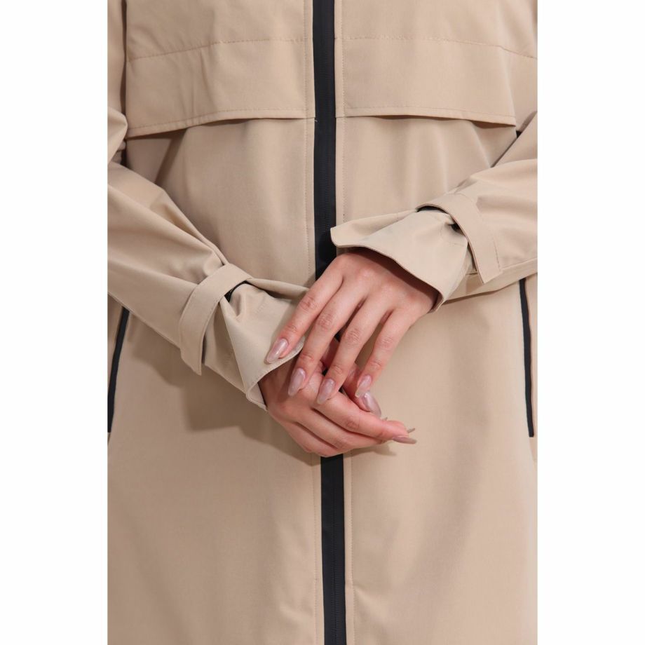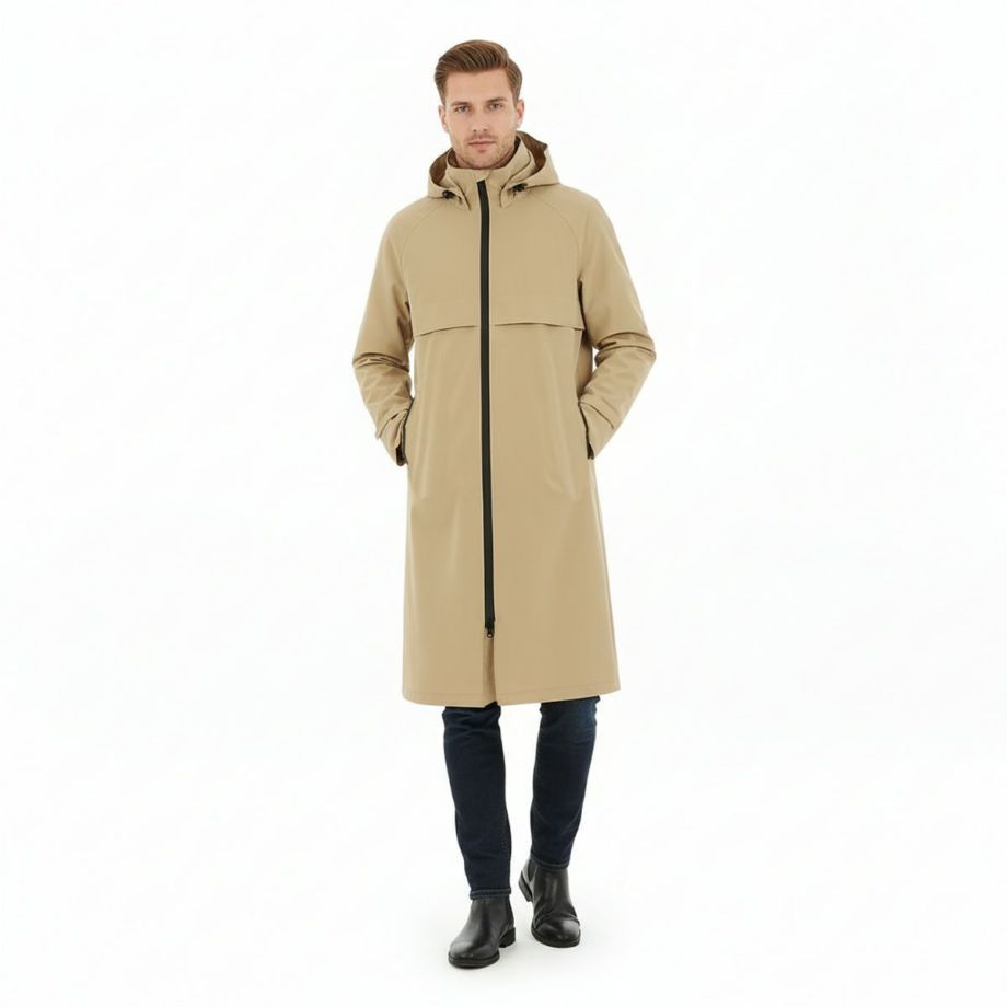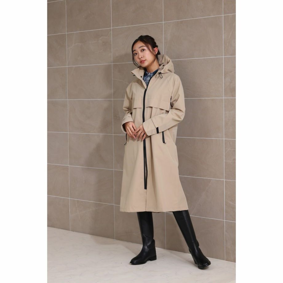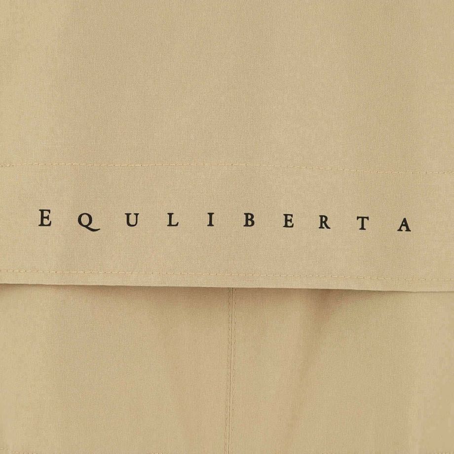 ■開発時のこだわり・レインコートといえば重い。そんなイメージを払拭すべく軽量化にこだわった製品で、ロングレインコートなのに非常に軽い着心地で動きやすく疲れにくいです。■優れた防水・撥水効果で雨をシャットアウト・耐水圧8,000㎜・特殊加工を施した生地が、雨水をしっかりと弾きます。・水滴が玉のようになり、生地に染み込むことなく滑り落ちるため、悪天候の中でもライダーを濡れから守り、集中力を維持します。■透湿性がありドライで快適な着心地雨はしっかりと防ぎながらも、レインコートの最大の課題である「ムレ」を解消します。運動などでかいた汗による湿気を外に放出し、ドライで快適な着心地を保ちます。■ファッション性へのこだわり・本体カラーにはベーシックな黒や紺ではなく、着るだけで雨の憂鬱さも和らぐような明るめのベージュをセレクト。・中央には太くスタイリッシュな黒いファスナー。・背面部分には横書きの「EQULIBERTA」ロゴがさりげなく配され、ブランドの個性を際立たせます。・男女問わず着用できるユニセックスデザインで、普段使いにも最適です。・シンプルながらも洗練されたベージュカラーは、どんな服装にも合わせやすく、急な雨の日の外出やアウトドアシーンでもおしゃれさを損ないません。・機能的ながらもタウンユースに馴染むデザインです。■より動きやすく、より快適に・肘部分にはダーツをとって、ツッパリ感を軽減。・手綱を持ったときにもできるだけ雨に濡れないようにカーブした袖口を採用。・袖口やウエストの絞りを微調整して、フィットさせることができます。・ウエストのスピンドルコードは内側に備え、スッキリと邪魔にならない設計です。・大きく開くバックスリットは内側にも生地がついているので、外に出して雨から鞍をカバーすることができます。・フロントは開閉を調節できる便利なダブルジップ。・騎乗時に裾の広がりをおさえるボタン付きの足用ループ(伸縮ゴム製)が付属、留め具が2か所にあり腿の太さによって調整可能。・フードはボタンで取り外しが可能です。・雨水が侵入しにくいジップ付きのポケット:フロント2ヶ所。・速乾性と肌ざわりを向上するメッシュの裏地。・パネルの通気孔で熱気を逃がすベンチレーション仕様。・襟元にあるループは、雨などで濡れた後にレインコートをサッとかけるのに便利です。■乗馬以外のシーンでも・動きやすく見栄えのするイージス高機能レインコートは乗馬以外の様々なシーンでも活躍します。・キャンプやフェスなどのアウトドアはもちろん、バイクや自転車でのお出かけ、雨の日の通勤などにもオススメです。