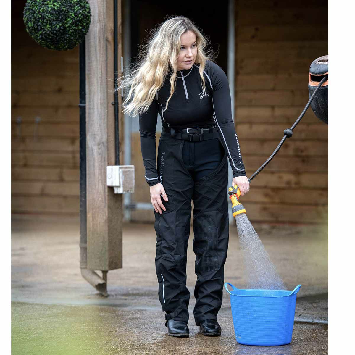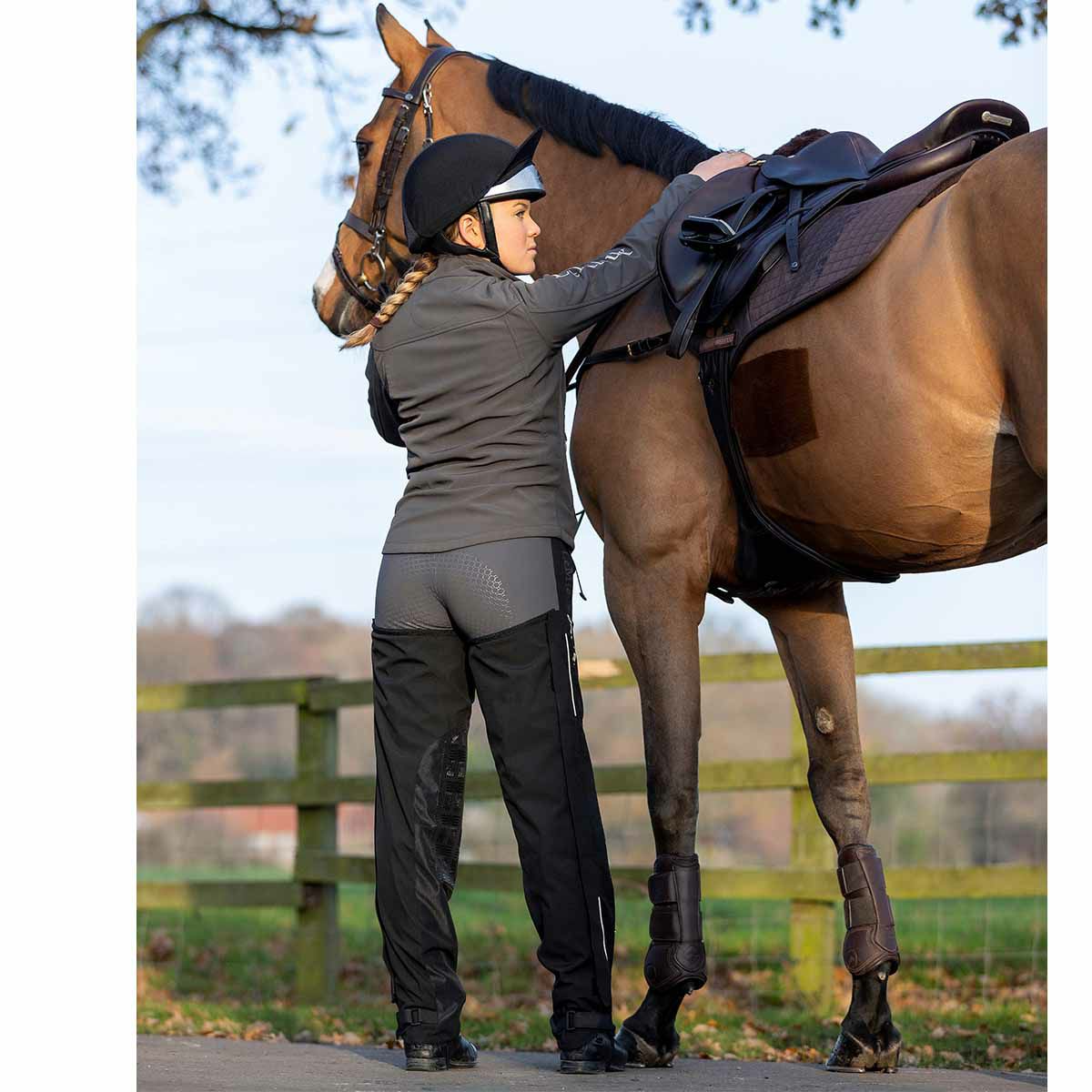 ・フリース裏地のあたたかい乗馬用のウォータープルーフチャップス。・通気性がありながら、防水(耐水圧5,000mm)、防風タイプの丈夫な素材で作られています。・両足のサイドにジップとベルクロを備え、簡単に着用することができます。・そのまま騎乗ができるようにニーグリップを施しています。・ウエストはベルトでサイズの調整が可能です。・寒い洗い場での作業や悪天候時の騎乗に。【サイズ選びのご参考に】スタッフの身長と着用サイズです。148cm:XS153cm:S163cm:M169cm:L