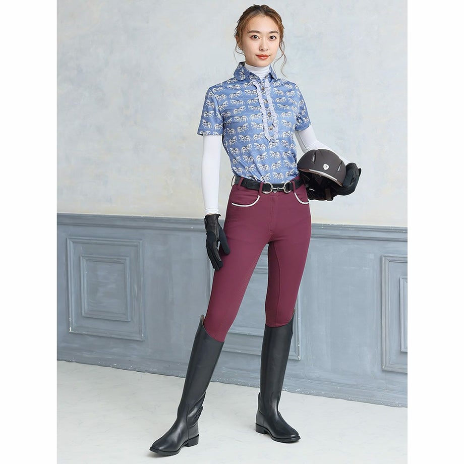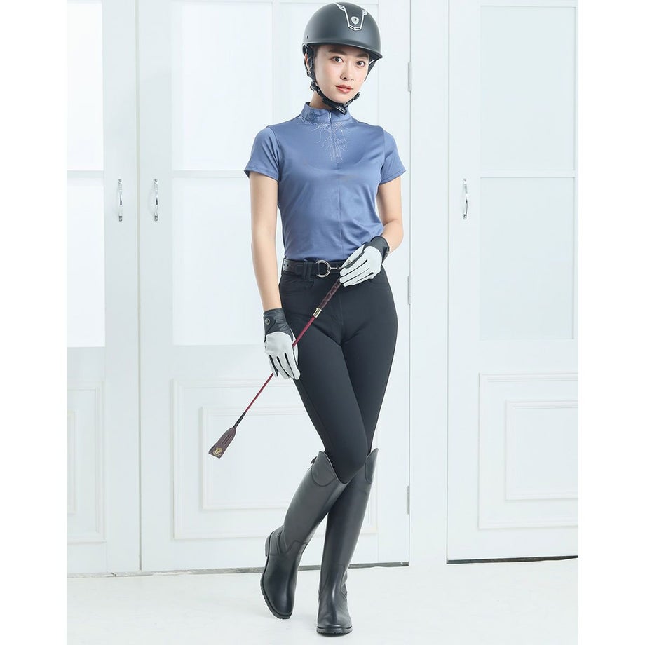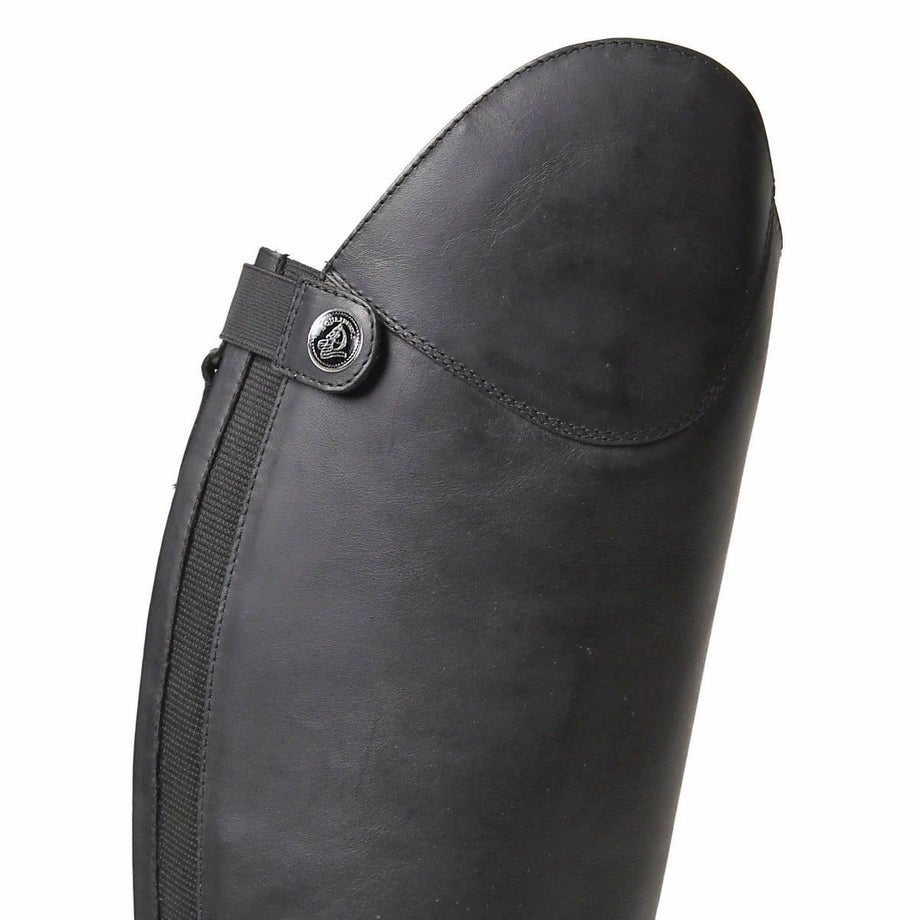 EQULIBERTAから待望の本革ロングブーツが登場しました。日本人の足に合うよう、日本でデザインされたラスト(木型)と型紙で生産されたブーツは、10足以上のサンプル製作とテストを繰り返して3年以上の時間を掛けて完成させたこだわりの一品です。・いつまでも履けるデザインデザインは流行に左右されないスタンダードな革長靴。1本は持っていたいトラッドなスタイルの乗馬ブーツに仕上がりました。・丈夫で使うほどに馴染む本革外側は柔らかい質感ながら丈夫でしなりがある牛革、内側はソフトで吸い付くようにフィットする肌触りの良い豚革です。・使いやすい、動きやすいバックのファスナーが下端ぎりぎりまで下がるので着脱しやすいです。ファスナーに沿って伸縮素材が入っているので、適度なフィット感を得られます。日本人でも履きやすい低めの筒丈で動きやすいです。あぶみの上も、コンクリートの上でも滑りにくいノンスリップソール。・足が長く、綺麗に見える日本人でも履きやすい低めの筒丈ながらデザインを工夫することで足が長く見えます。筒外側のトップを高くしてヒザを包み込むようなカーブにすることで、足が細く長く見えます。またヒールも若干高めになっています。・タウンユースにもおすすめトゥ(つま先)がスクエア型で、都会的に洗練された雰囲気。普段履きでも絵になるスタイルです。また高級感のあるロゴ入りボタンは馬モチーフのロゴがさりげなく乗馬をアピールします。【開発ストーリー】靴のフィット感で最も重要なものは、靴の元になる土台の「ラスト(木型)」です。革靴は、ラストに革を被せて形が作られます。日本人の足にフィットした乗馬ブーツを作るには、日本人の足に合ったラストを作らなければなりません。そこで日本屈指の靴の産地、神戸・長田で長い歴史をもつ老舗メーカーに協力を依頼しました。そしてサンプルを製作しインストラクターによる騎乗テストを行います。テスト結果をフィードバックしてラストを削ったり、肉付けしたり。またロングブーツなので足首より上側は木型ではなく型紙でデザインされるのですが、この部分も合わせて細かく調整されます。素材に問題があれば革の種類やなめし方を変えたりして完成に近づけていきます。そうして、3年以上の時間と10足以上の試作品を経て最終サンプルが完成しました。ブーツの量産は、長年ドイツや英国向けに乗馬ブーツを生産してきた海外工場に依頼しました。何度か量産サンプルの修正を繰り返し、さらに1年の歳月を掛けて皆様に提供できるブーツが完成しました。多くの人の想いを経て完成したブーツです。是非一度お試し下さい。