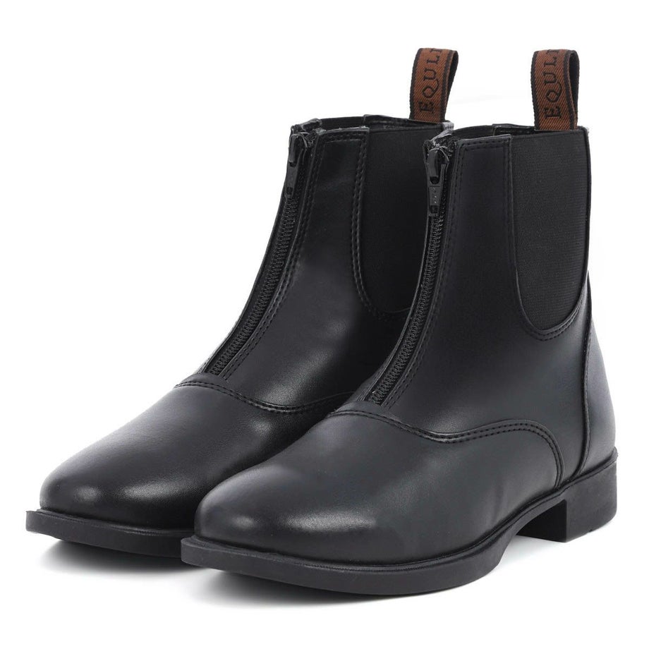 足首の曲げやすいショートブーツ&チャップススタイルは、ビギナーに最適!本革に近い質感の合成皮革を使用。同色のチャップスと合わせればカジュアルすぎない脚元の完成です。脱ぎ履きしやすいフロントファスナー、拍車止め、靴底滑り止め加工など機能性も◎。お手入れしやすいのも嬉しいポイント。・本革に近い高級感のある合成皮革を使用・フロントファスナーで脱ぎ履きカンタン・拍車の位置が安定する、拍車止め付き・あぶみが滑りにくい、靴底すべり止め加工・合皮だから、お手入れもラクラク・工場からの直接仕入れで、品質はそのままにこのお値段を実現しました・乗馬ビギナーや、耐久性にはこだわらずお値段重視の方におすすめです