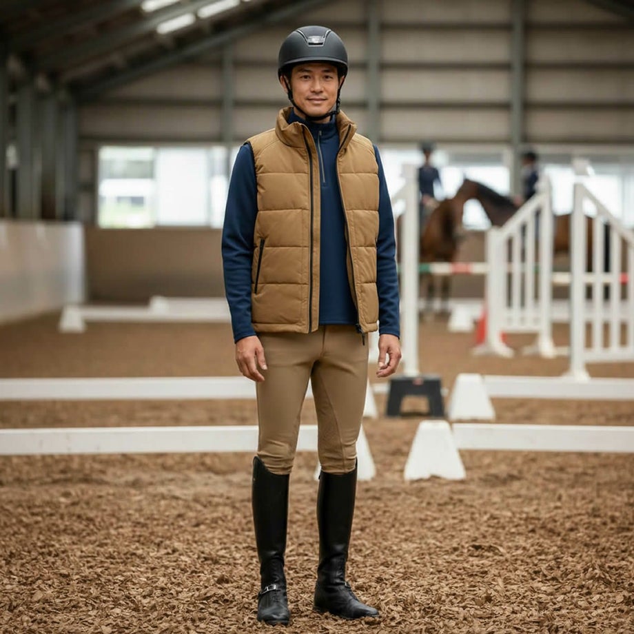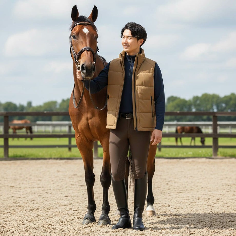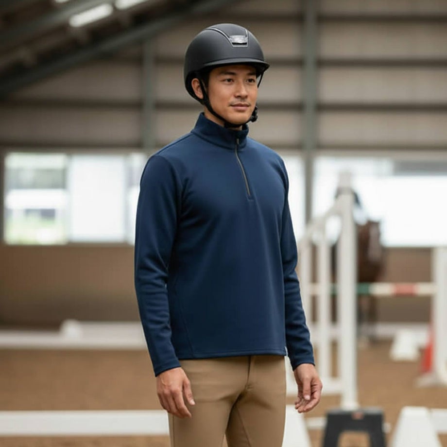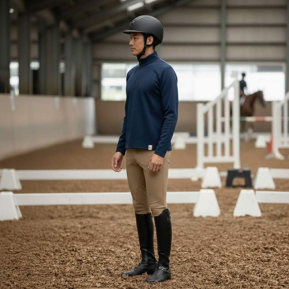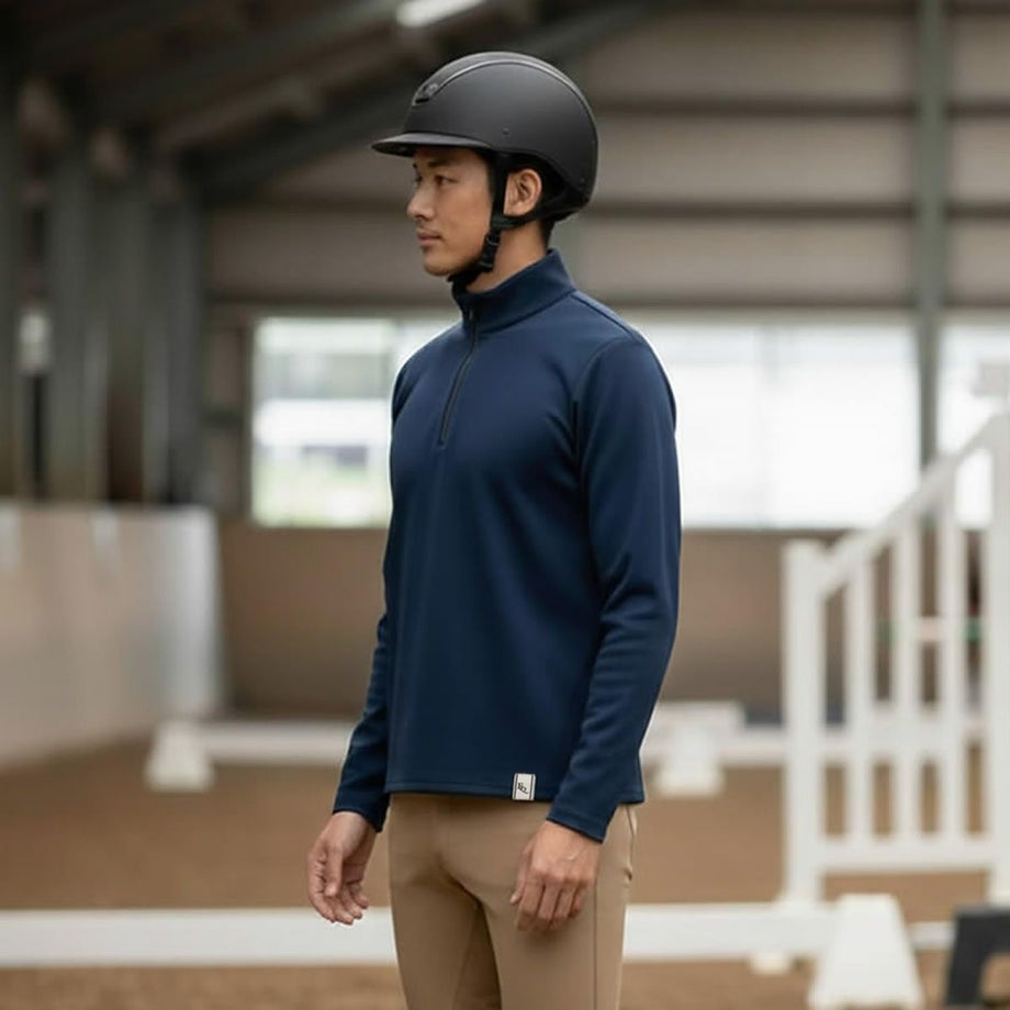 ・思わずふれたくなるような上質感のある柔らかな肌触りの長袖ハーフジップアップカットソー。・抜群のストレッチ性のある生地が体の動きに心地よくフィットし、ストレスを感じさせません。・温かみのあるほど良い厚みの素材ながら、裏起毛ではないので秋口から春先まで長いシーズン着用いただけます。・程よくフィットするハイネックのデザインが、首元への冷気の侵入を軽減し、顔周りをすっきりと見せます。・派手すぎず、上品な輝きを放つアンティークゴールド調のファスナーがクールなカラーにさりげなく映えます。・裾に施した小さなピスネームがさりげなくブランドをアピール。・後身頃から脇にかけて入る切替ラインが、体を立体的に見せ、きれいな後ろ姿を演出。・背中のバックプリントがスポーティ、且つモードな雰囲気を高めています。・乗馬はもちろん、ゴルフやテニス等その他のスポーツ、キャンプや登山等様々なアウトドアシーンでも活躍。