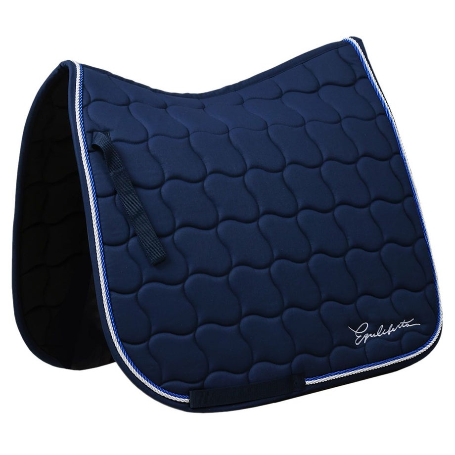【サドルパッド】・上品さが際立つ、クラシックなキルティングデザイン。・馬体にやさしくフィットし、クッション性に優れた快適な乗り心地。・ネイビー×ホワイトのブレードパイピングが、洗練された印象を演出。・同系色のイヤーネットや馬具とのコーディネートも可能。・さりげないロゴ刺繍入りと、シンプルな無地タイプからお選びいただけます。【プロテクター】・練習用から試合用まで幅広く使えるコスパの高い定番プロテクターの登場です。・内側は厚手で弾力の高いネオプレン、外側はプラスチックのように硬いTPUで繊細な馬の脚をしっかり保護します。・強力なダブルベルクロでしっかり装着できるので、障害飛越などの激しい動きでもずれずに固定。・丈夫な素材で丸ごと水洗いできるのも嬉しいポイント。泥馬場でも気にせず使えます。