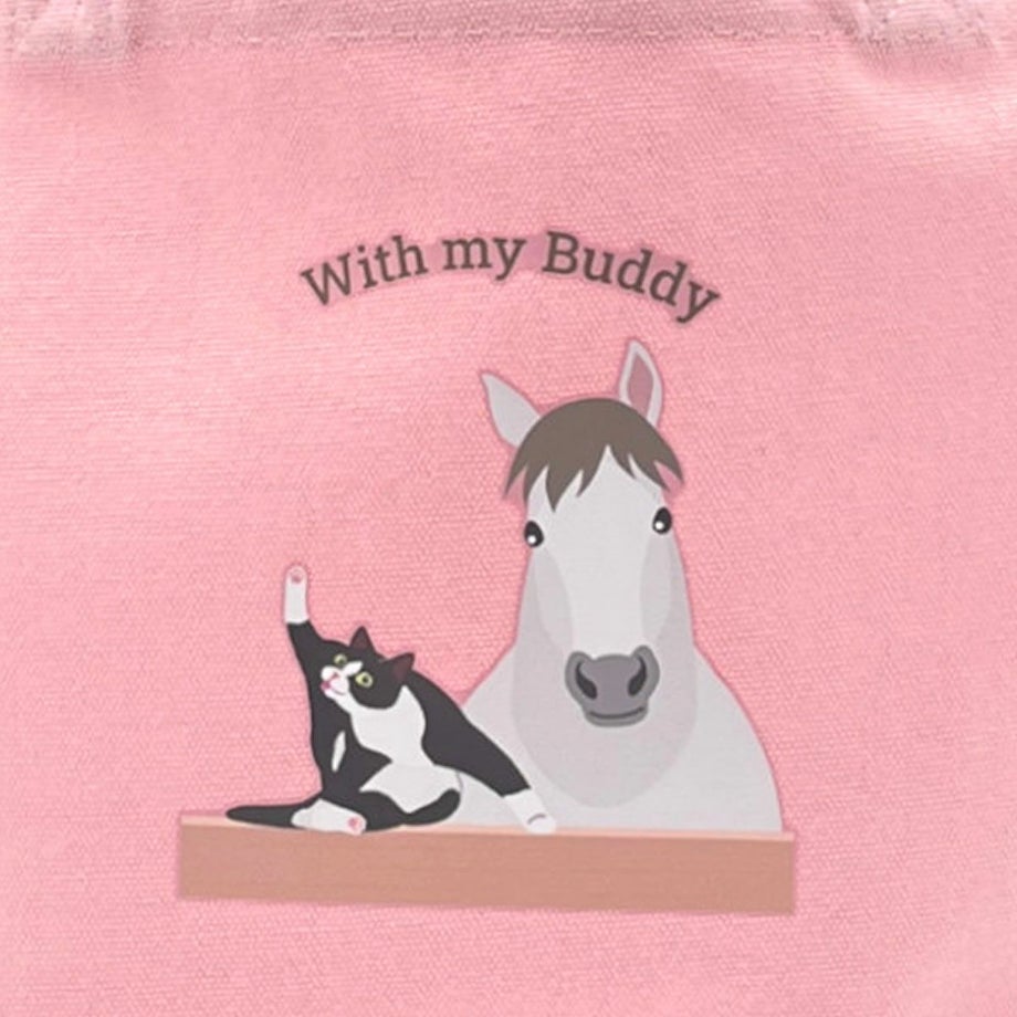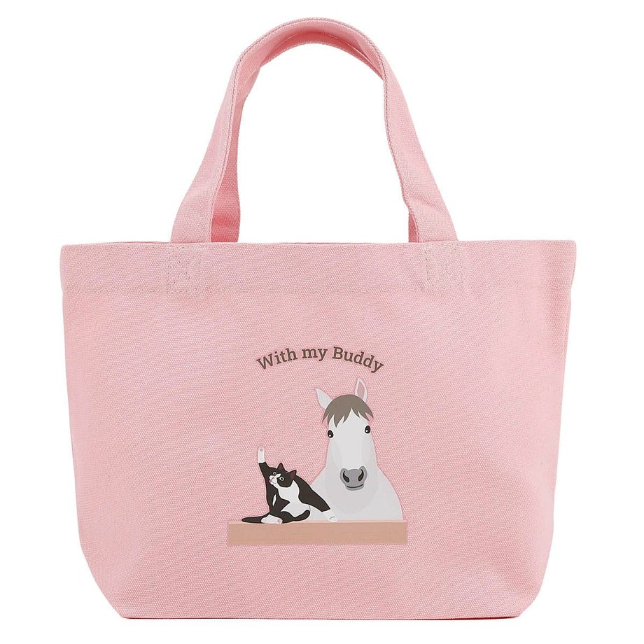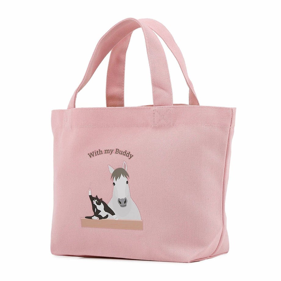 ・お弁当や飲み物を入れるのにちょうど良いサイズ感で、ランチバッグに最適です。・しっかりしたマチのある船底タイプで、荷物を入れても安定します。・丈夫な12オンスキャンバス生地で耐久性があり、重いものを入れても安心です。・ランチバッグ以外にも、お散歩バッグやサブバッグとしてもお使いいただけます。・馬のイラストとナチュラルな色合いで、どんな服装にも合わせやすいです。