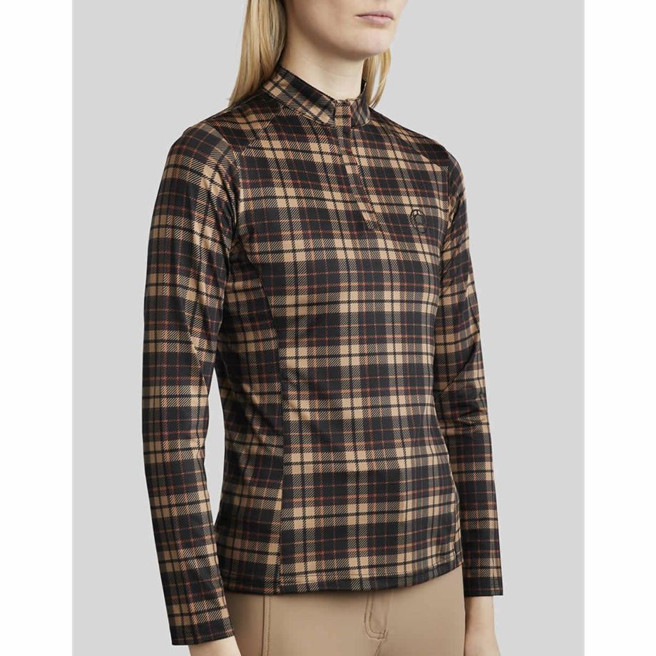 ・クラシックで上品な趣の乗馬用のトレーニングシャツ。・ライディングスタイルにもこだわりたい方にオススメな限定モデル。・耐久性、通気性にすぐれた高品質の軽い素材。・フィット感がよくて快適です。・細身のコンパクトなシルエットで体型をすっきりと見せてくれます。・ジップをあしらった襟元なので着脱がカンタンです。・ポケット:フロント2ヶ所。