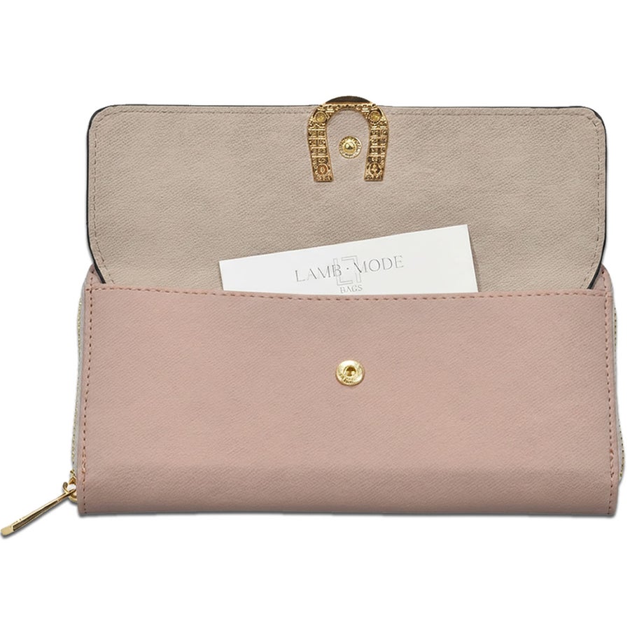 幸運の馬蹄が彩る、ボックス型小銭入れ搭載の機能的な長財布。 LAMB MODE エポメタルデニムライク ラウンド長財布