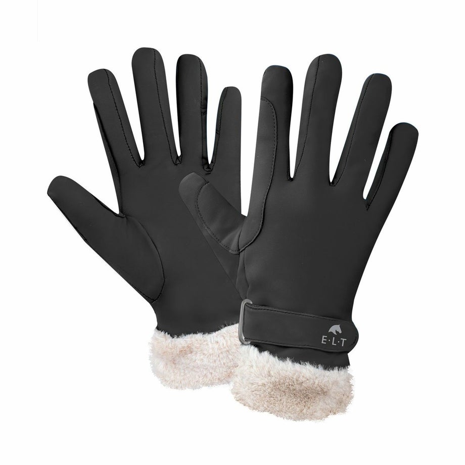 ・スタイリッシュなディテールが魅力の冬用ライディンググローブ。・伸縮性のあるサーマル素材で、動きやすくしっかり保温。・保温性のあるフェイクファーの裏地で騎乗中も暖かさが持続。・防風・防水仕様で、寒い季節のライディングにも安心。・手首部分のフェイクファーが、暖かさと高級感を演出。・ベルクロで着脱が簡単、しっかり固定。・ベルクロには反射ロゴ付きで、視認性もアップ。
