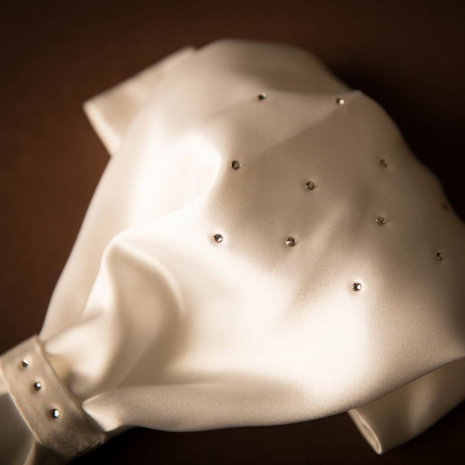 今までにない、まさに自分が欲しかったアスコットタイを商品化しました!!この商品だけを見るよりもジャケットを羽織ったときのことを想像してみてください。シンプルなジャケットが激変します!!光沢のある生地とひかえめにちりばめられたストーンがポイント。キラキラしすぎず上品な胸元になります。また見た目だけでなく、競技前の忙しいときにも簡単に装着できるよう首元の留めを前に持ってきてよりサイズ調整しやすくなっています。見た目・機能性、どれをとっても超オススメです☆★(anego)