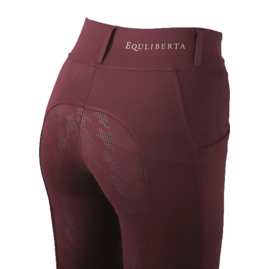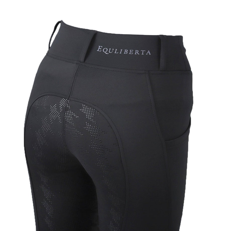 ・シーズンを通して活躍してくれる吸水速乾性がすぐれた乗馬用のレギンスフルグリップ。・腰回りのおさまりがよくて美脚に見えるハイウエストのタイプ。・ほどよい厚みがありますがソフトな肌当たりで、とても軽やかな着用感です。・すぐれた伸縮性でフィット感が高く、ストレスフリーのはき心地。・通気性や吸水速乾性がすぐれた素材は暑い季節はベタつかず、寒い季節は汗冷えを防ぎ、快適さをキープしてくれます。・シリコンのホースロゴがさりげないワンポイント。・すべり止めのシリコンプリントはエレガントな英国伝統のハウンドトゥース柄。・スマホなどが入るスリットポケット左右各1ヶ所。・ベルトを通して使えるベルトループ付きなのでキチンと感も演出できます。