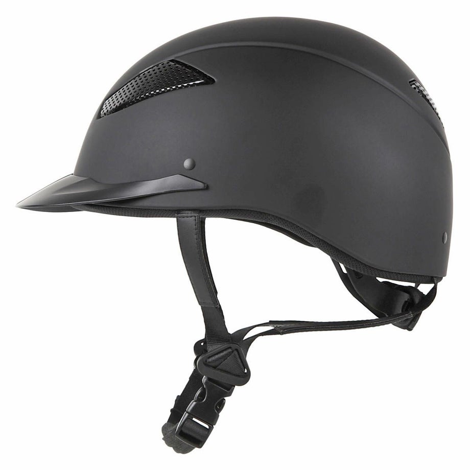 シンプルでスポーティな印象のヘルメット。吸汗速乾素材のクールマックスが使用されているので、熱がこもりがちな頭部を快適に保ちます。・涼しく快適なクールマックス内部のインナーには機能性素材のクールマックスを採用。体から汗を吸い上げ素早く蒸発させる機能素材だから、涼しくドライな着心地です。・サイズ調整ダイヤル機能後部ダイヤルのサイズ調整機能で頭部をしっかりと固定できます。ダイヤルの回転を硬めにすることで、徐々に緩まないよう工夫されています。・高い安全性ヨーロッパで新たに制定された、より安全性を高めた乗馬ヘルメットの新安全基準VG1に適合しています。内部には衝撃吸収性に優れた素材、高密度EPSを採用。落馬や衝突などの事故から頭部を安全に保護します。・高い通気性前方と後部に大きな通気孔が配置され、熱がこもりにくく快適です。・汗で汚れやすいインナーも常に清潔インナーのパッドとあご紐のパッドは取り外して洗濯できるので、汗汚れが気になる部分を常に清潔に保てます。汚れや洗濯で損耗しやすいパーツですが、交換用パッドが別売りされているので安心して長くお使い頂けます。・長年培われた技術とノウハウヨーロッパの有名乗馬ブランドのヘルメットを数多く手掛けてきた工場が生産に協力。長年培われた技術とノウハウが活かされたヘルメットです。・ロゴ入りイージーバッグ収納・持ち運びに便利なEQULIBERTAロゴ入りのイージーバッグが付属。騎乗後に砂埃がついたヘルメットを収納すれば、周りへの汚れ移りも心配ありません。
