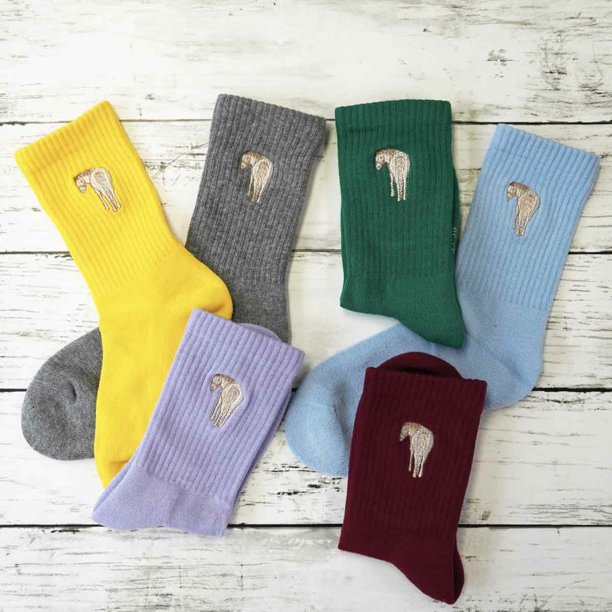 ・愛らしい馬のキャラクター「Nico」の刺繍入りカジュアルソックス。・肌にやさしいコットン配合で通気性があり、ソフトな素材。・クッション性のある足底や部分ごとの着圧など、快適な着用感にこだわっています。・コーデのアクセントになる豊富なカラーバリエーション。・馬好きの方へのちょっとしたプレゼントにも。・同ブランドのウエアやバッグなどと合わせて統一感のあるコーデが楽しめます。【Nico/ニコ】かわいい馬の姿に見た人みんながニコっと笑顔になれる。Nicoをあなたの日常に。