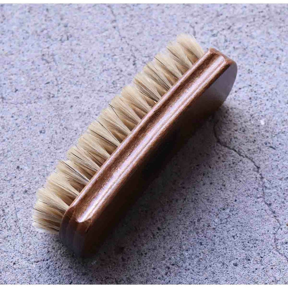 ・ブーツや革靴のツヤ出し、仕上げに最適なピッグブラシ。・毛足が短く、コシのある豚毛のブラシ。・ブーツや革靴などに クリームやオイルを塗り込んだ後のブラッシングに。・ナチュラルな豚毛のブラシはクリームやオイルが馴染み、使うほどにツヤが出やすいブラシに育ちます。・握りやすい持ち手。【SADDLEUP/サドルアップシリーズ】" Saddle up " の直訳は「鞍(くら)を上げろ」。一方、アメリカ映画などでは「さあ、出発だ」という意味でも使われます。Saddle(サドル)とは馬の鞍を意味しますが、Leather(レザー・革)をイメージさせる言葉でもあります。" Saddle up " という言葉がもつ、強靭でタフなイメージをブランドのコンセプトと重ね合わせ、「ダメージを負って色褪せた革が瞬く間に蘇る」そんな非日常的な体験を演出します。