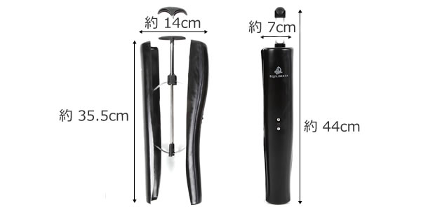 レバー式で抜き差しが簡単なブーツキーパーです。大事なロングブーツの型崩れ防止に。・上部レバーでキーパーの幅が伸縮し、出し入れが簡単です。・内側のバネが本体をしっかりと伸ばすことで、ブーツの筒部分に張りを与えます。・筒部分が空洞なので、乾燥剤を入れることも出来ます。・ロングブーツの筒が倒れないので玄関に置いても、下駄箱に入れてもきれいに保管することができます。・乗馬用だけでなく普段使いにもとても便利。ご自宅の玄関にも1ついかがですか?
