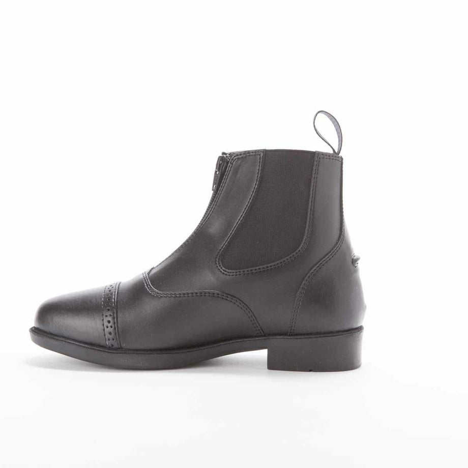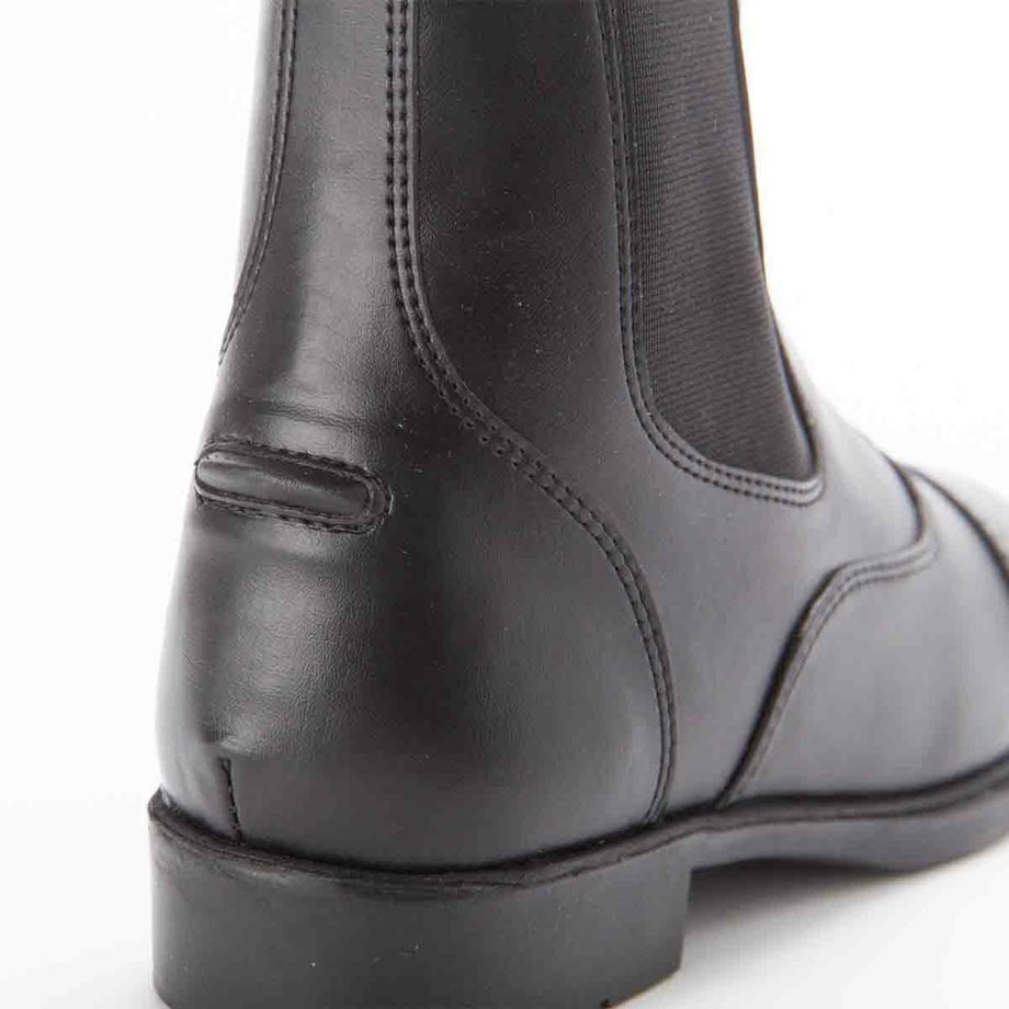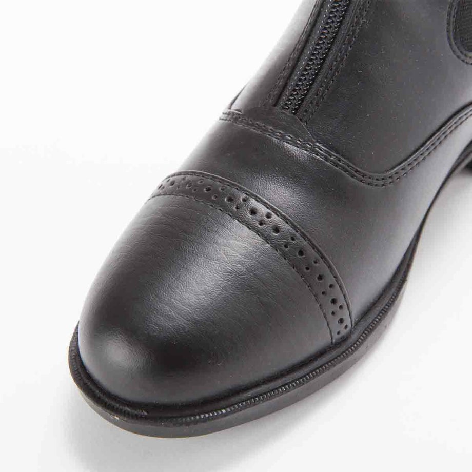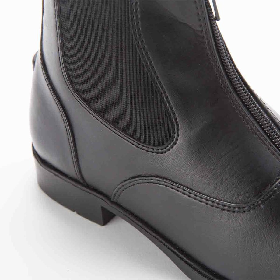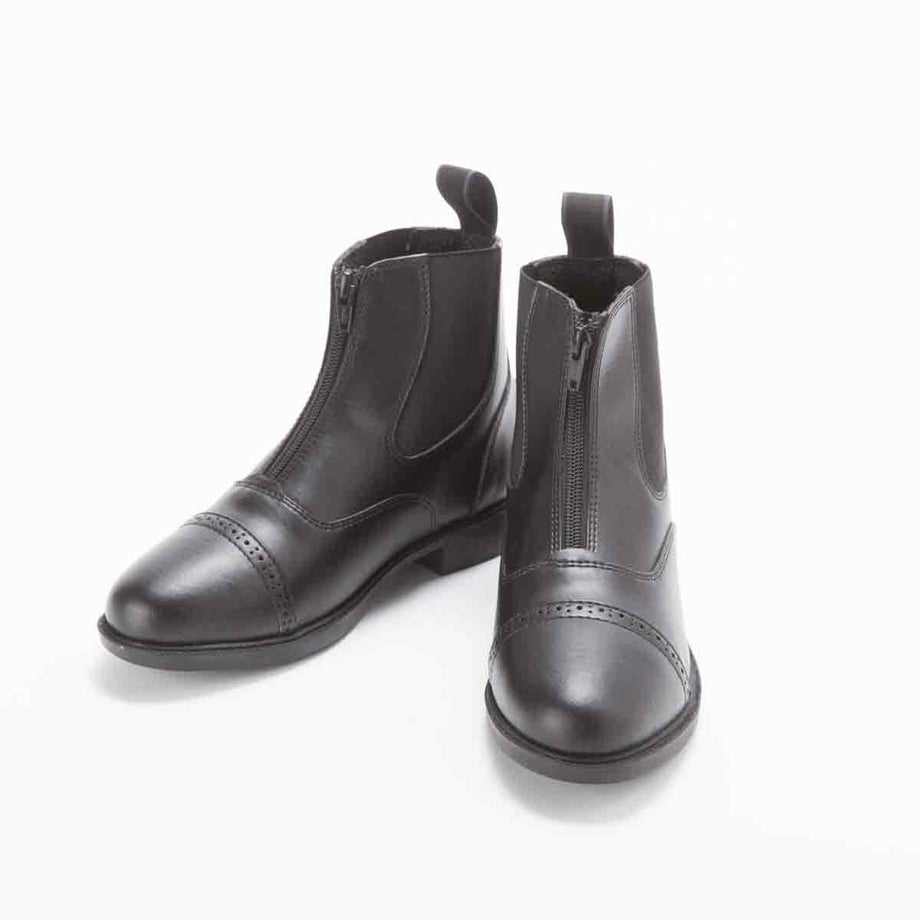 足首の曲げやすいショートブーツ&チャップススタイルは、ビギナーに最適!本革に近い質感の合成皮革を使用。同色のチャップスと合わせればカジュアルすぎない脚元の完成です。脱ぎ履きしやすいフロントファスナー、拍車止め、靴底滑り止め加工など機能性も◎。お手入れしやすいのも嬉しいポイント。裏地には機能素材Cambrelle(キャンブレル)を採用。独自の繊維構造により汗を素早く吸収、拡散し、速乾性に優れた素材が足を衛生的で快適に保ちます。カビやバクテリアの増殖を抑制するので、臭いを抑える効果もあります。・当店オリジナル商品・本革に近い高級感のある合成皮革を使用・フロントファスナーで脱ぎ履きカンタン・吸水速乾機能や抗菌防臭効果のある機能素材Cambrelleの裏地・拍車の位置が安定する、拍車止め付き・あぶみが滑りにくい、靴底すべり止め加工・合皮だから、お手入れもラクラク・工場からの直接仕入れで、品質はそのままにこのお値段を実現しました・乗馬ビギナーや、耐久性にはこだわらずお値段重視の方におすすめです