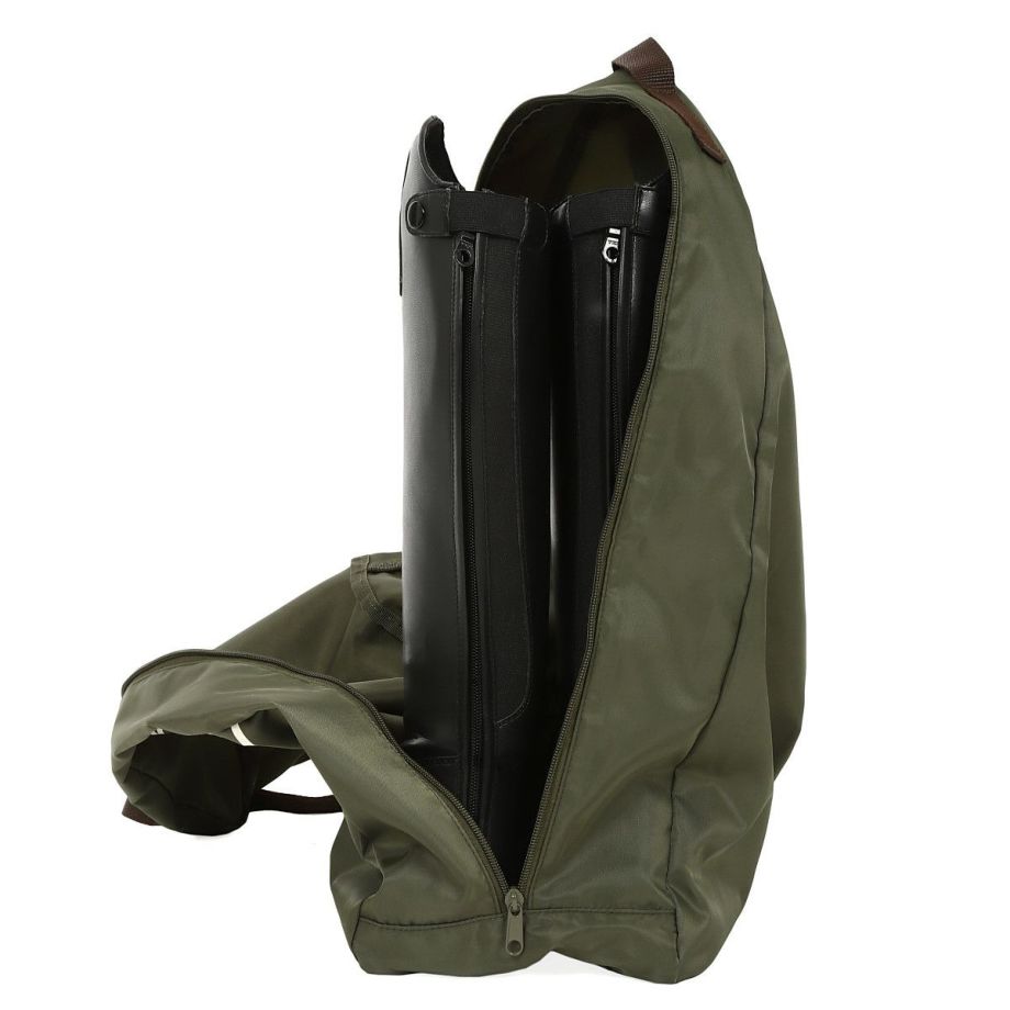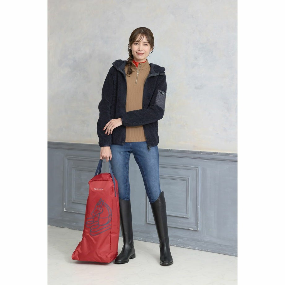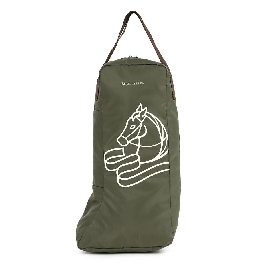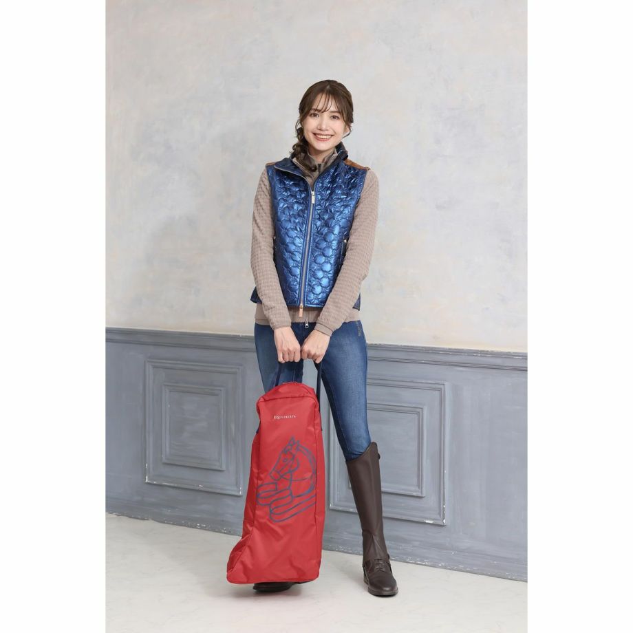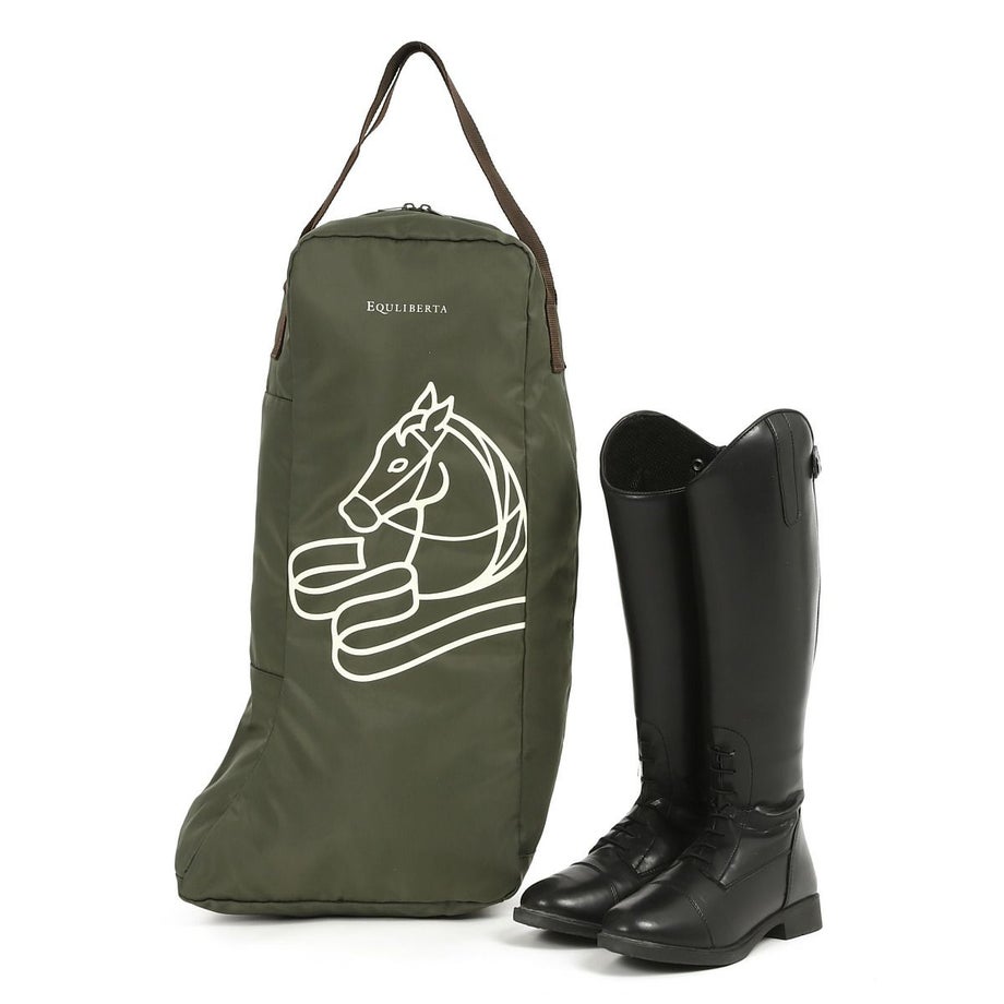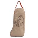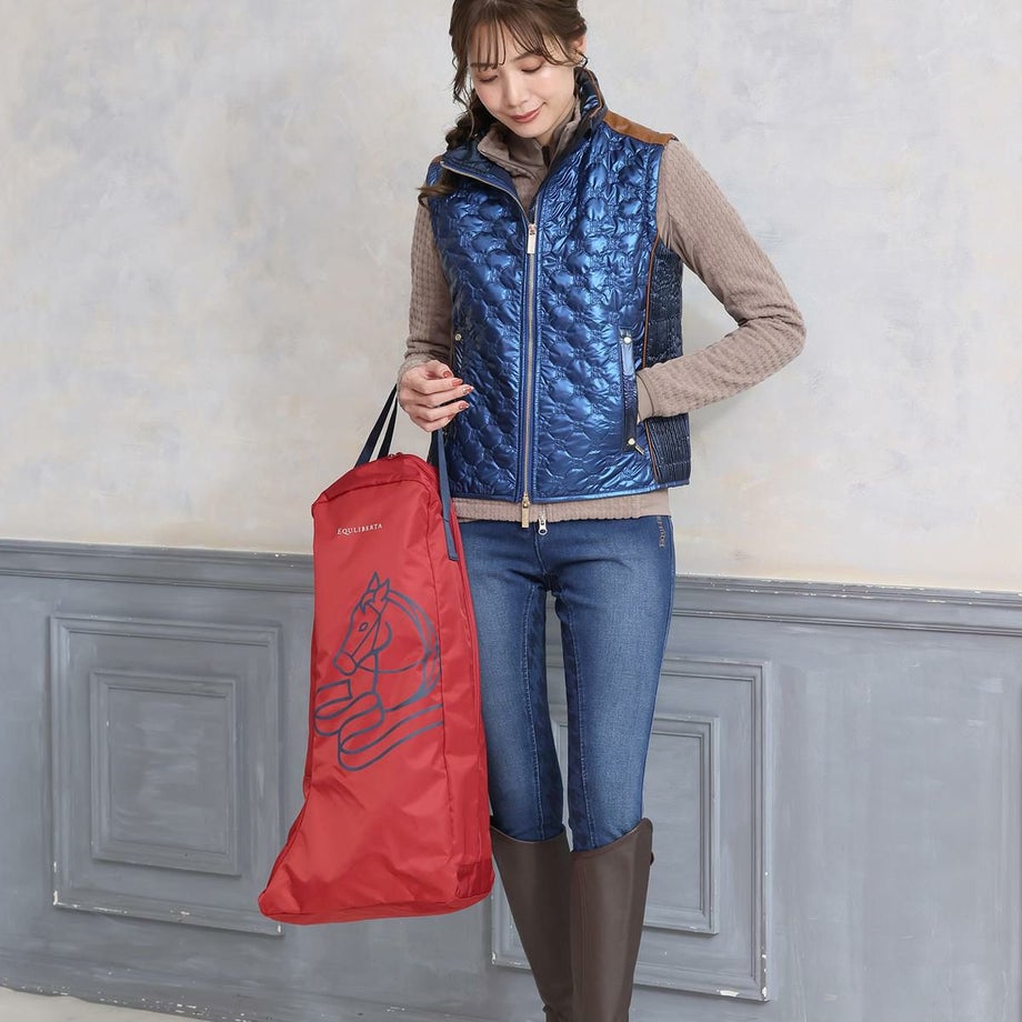 ・シンプルながら実用的で使いやすく設計されたロングブーツバッグ。・ロングブーツをスマートに持ち運べます。・大きくプリントされたホースヘッドのブランドロゴが目を引きます。・ファスナーを大きく開くことができるので大きなロングブーツも出し入れが簡単。・チャップスやゲートルも一緒に収納できます。・インナーバッグとして使用すれば完全に汚れをシャットアウト。個別に出してそのまま持ち運べるので取り扱いもカンタンです。・汚れてもさっと洗えてすぐに乾く、丈夫なポリエステル素材を使用。・同ブランドのキャリーバッグのシリーズで揃えるとより引き立ちます。