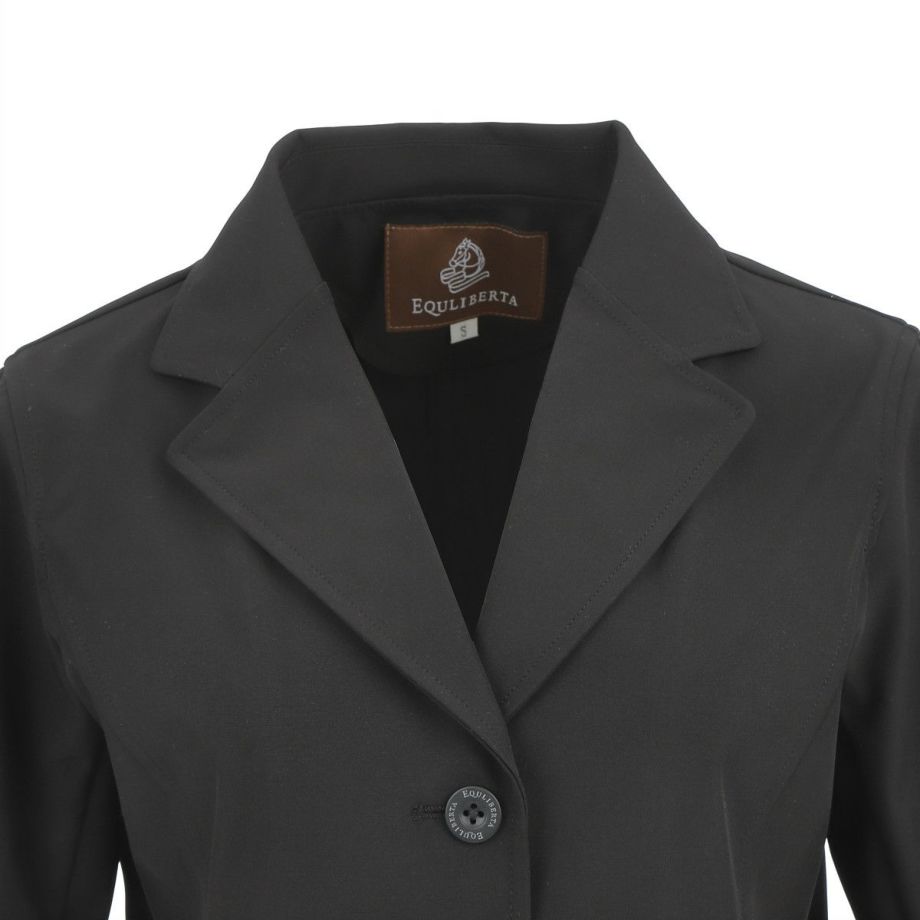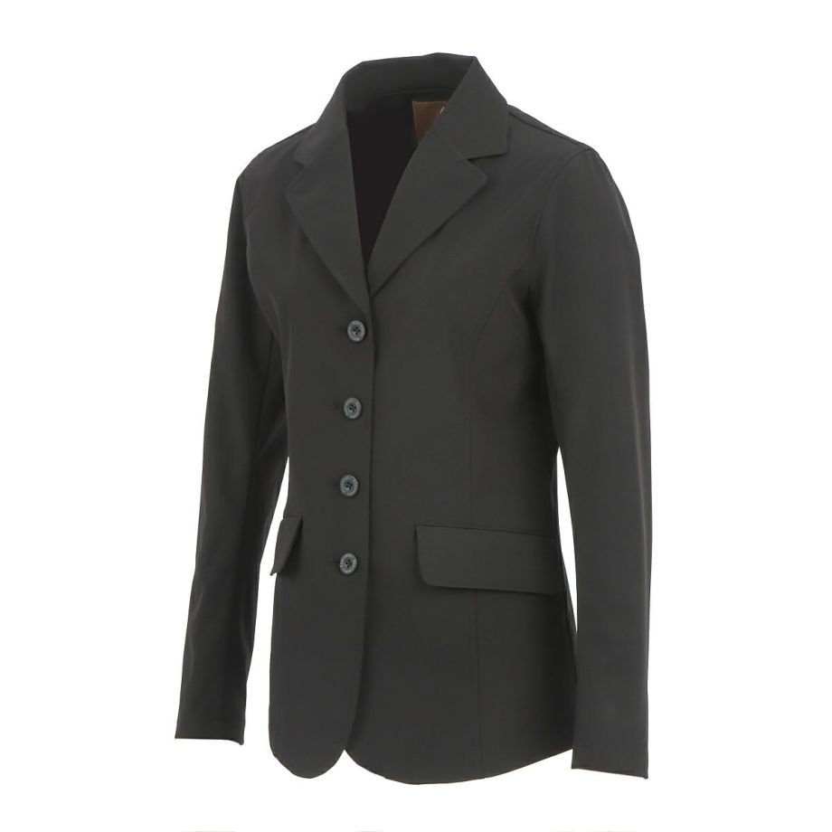 【ショージャケット】・高機能で人気が高いソフトシェル素材の乗馬用ショージャケット。・ストレッチ性があり、フィット感がいいのはもちろん、UPF50+、撥水機能なども備え、あらゆる天候下での騎乗にマッチします。・ムダをそぎ落としたシンプルなジャケットは、動きやすさと美しくクラシックなシルエットにこだわっています。・幅広いサイズ展開なのでピッタリのサイズをお選びいただけます。・ポケット:フロント2ヶ所。・袖口にボタンがないタイプなのでボタンの干渉や落下の心配がありません。・動きやすさを追求肩口から袖が前方に流れているデザインを採用し、騎乗時の腕・肩周りの窮屈さを軽減しました。縦にも横にも伸びる2WAYストレッチは、動きやすくてフィット感抜群です。・オールシーズン快適な着心地このアイテムのために開発された独自の高機能ソフトシェルファブリックを採用。雨や雪の日には撥水、寒い冬でも防風で体温を保持、暑い夏でも通気性を確保するオールシーズン対応。・撥水機能多少の雨や雪なら気にせず騎乗できます。・透湿湿気を外に逃がす生地なので汗をかいても快適。・防風防風効果のある生地だから、冬場の騎乗でもしっかり保温されます。・防汚、防花粉汚れにくい生地でメンテナンスもカンタンです。ご家庭での洗濯もOK。花粉もつきにくいので花粉症の方にもおすすめ。・UVカットUPF50+の紫外線ガード機能。馬場の日差しから肌を守ります。・騎乗に最適化されたシルエット生地の特性を考慮して熟練パタンナーがデザインしたショージャケットは、姿勢の美しさと動きやすさを両立しました。・素材へのこだわり使用する素材は国内の専門機関で百貨店並みの厳しい試験に合格したものを採用しました。※フロントの合わせは、レディースサイズは右前(ボタン4つ)、ジュニアサイズは左前(ボタン3つ)です。【ジャケットキャリーバッグ】・ジャケットから丈の長い燕尾服まで収納できるガーメントバッグ。・三つ折りなのでコンパクト。試合場への持ち運びも楽々。・表側の丈夫なポリエステルが衣類を保護。裏側の不織布は通気性抜群で湿気を逃がします。・2層構造の生地が大事な衣類を最適な状態に保ちます。持ち運びにも、保管にも。マルチに使える便利バッグ。・専用ハンガー付き。