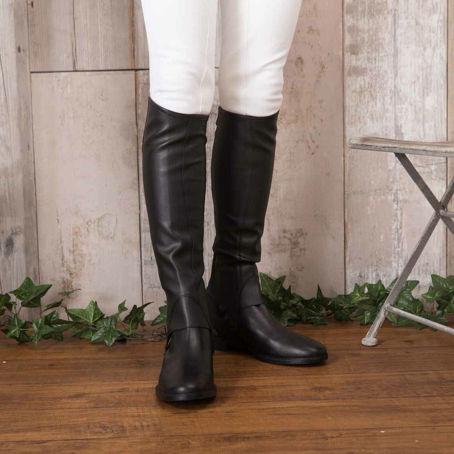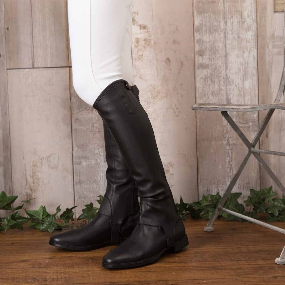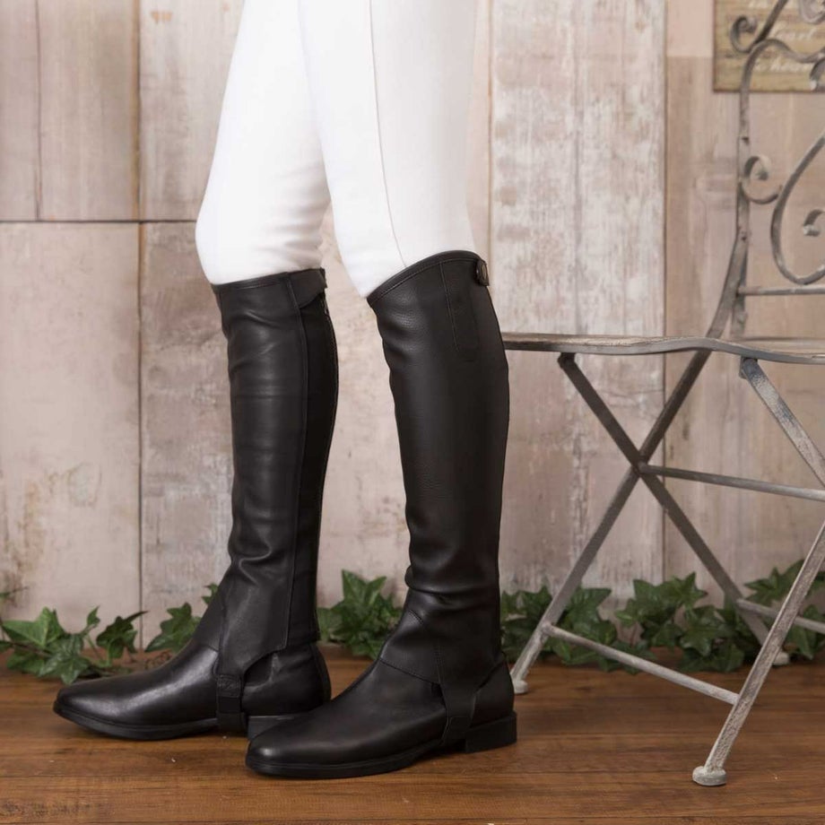 ・内側は脚馴染みの良い柔らかなレザー、外側は伸縮しやすい合皮を使用。・騎乗時の見た目の美しさを重視してバックファスナータイプ。・ファスナー周りはゴムでフィット感も抜群です。