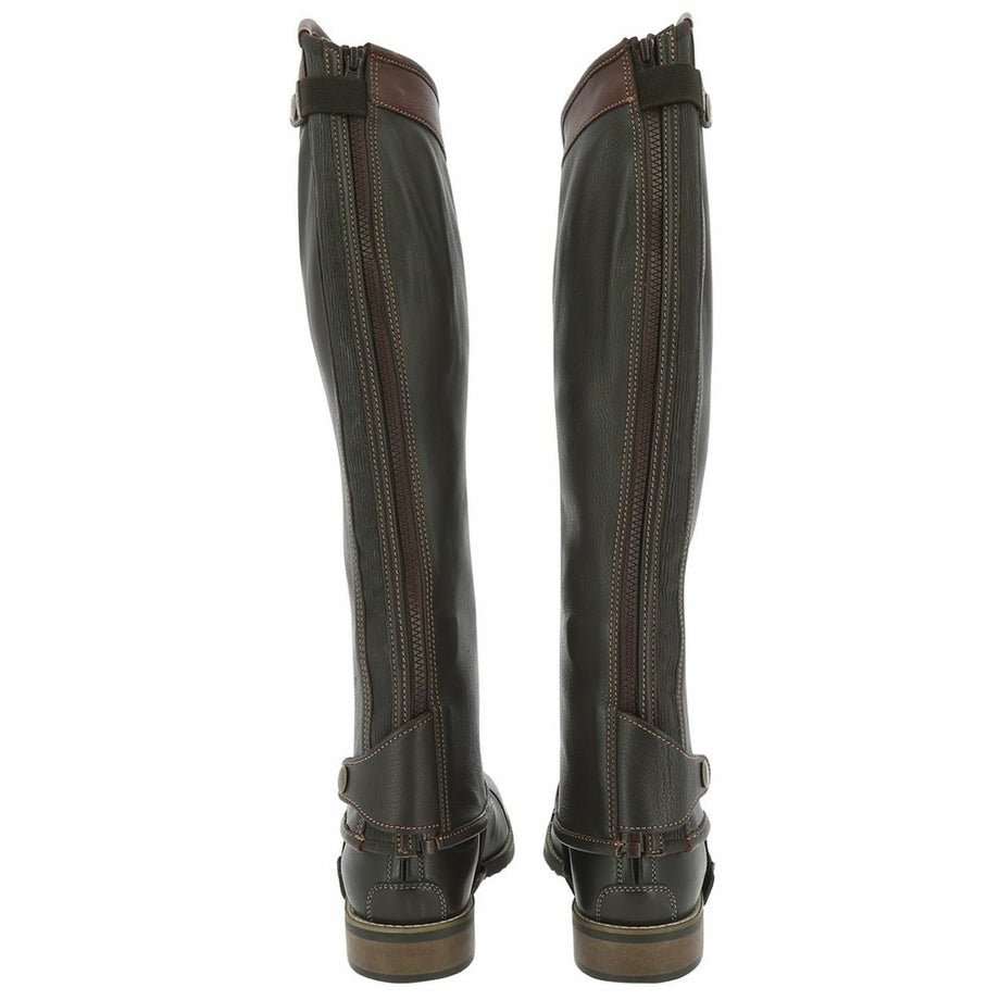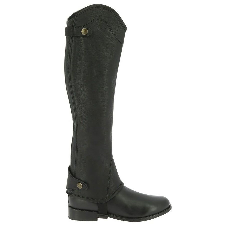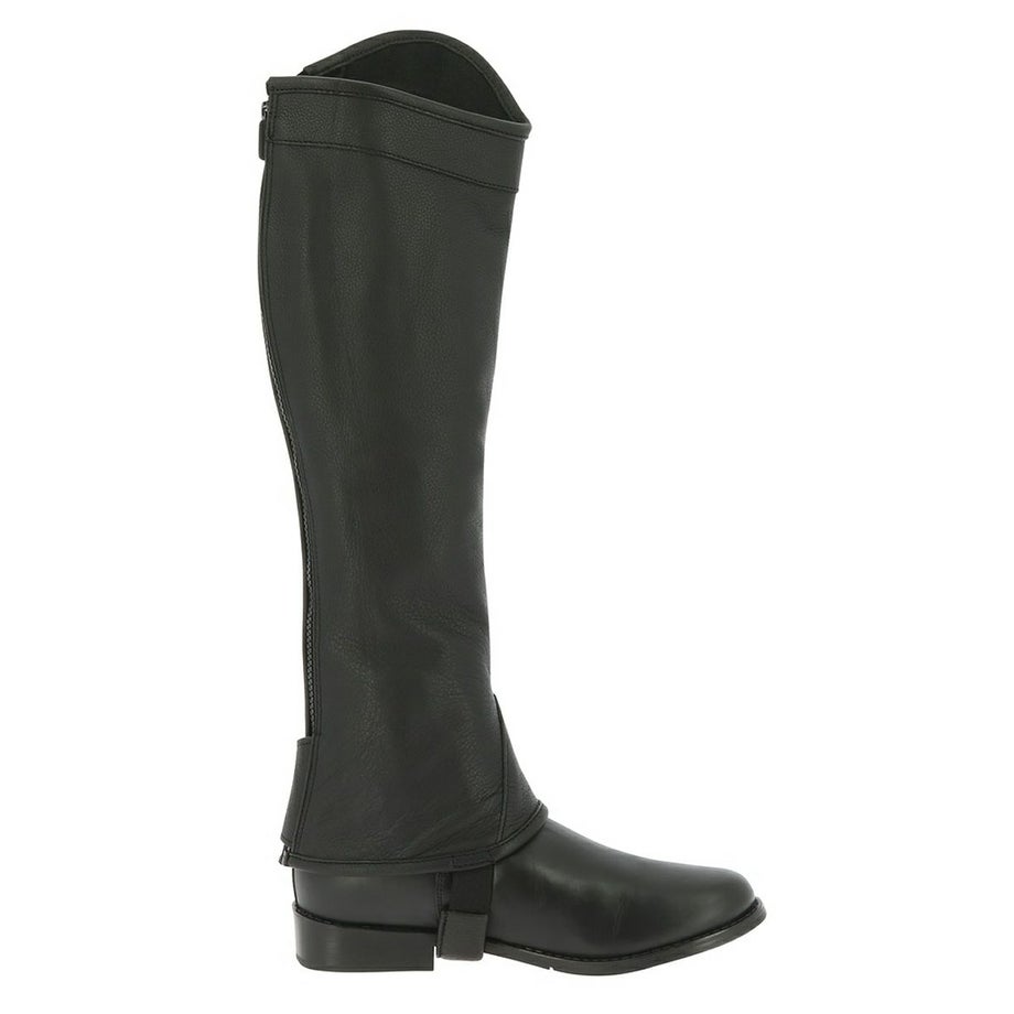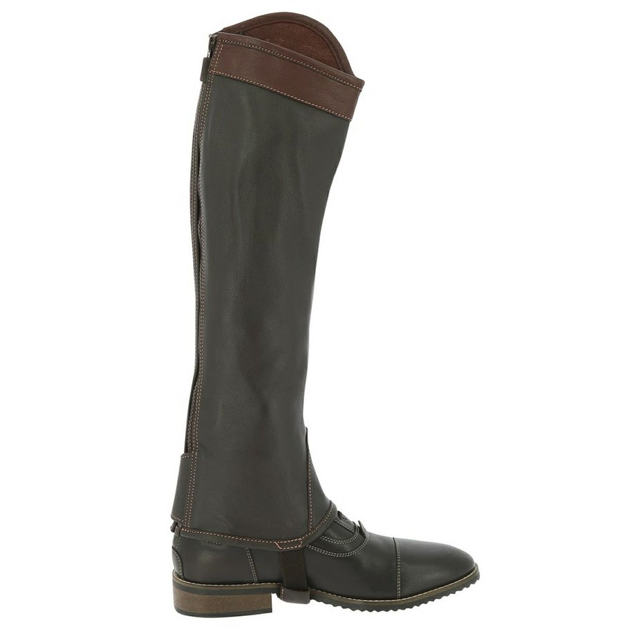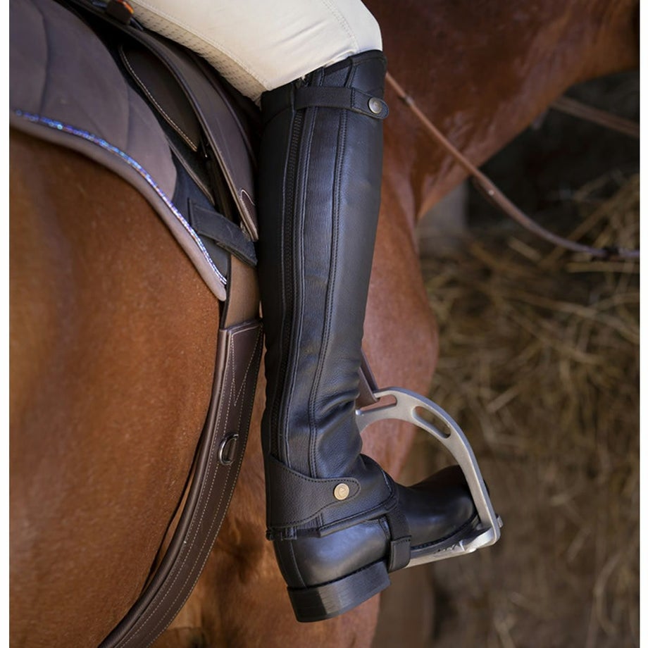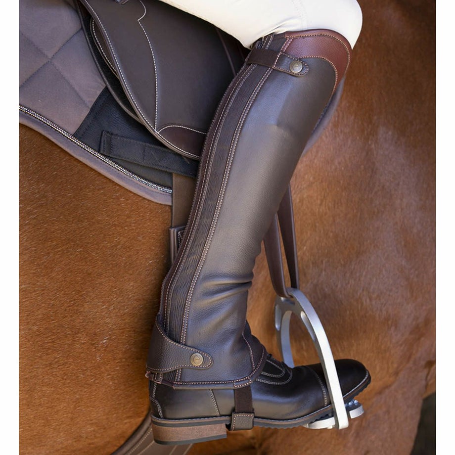 ・フィット感のよい洗練された本革のチャップス。・丁寧な縫製やディテールにまでこだわったデザイン。・バックのジップ近くにはエラスティックな素材を一部使用することで着脱のしやすさとフィット感をUP。・馬モチーフのロゴ刻印入りのスナップボタンや履き口のトリムで高級感のある仕上がりです。・乗馬ウエアや馬具と合わせてコーデを楽しめる2色展開。