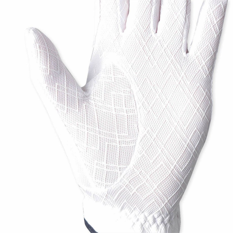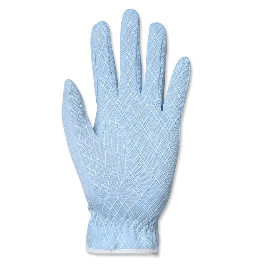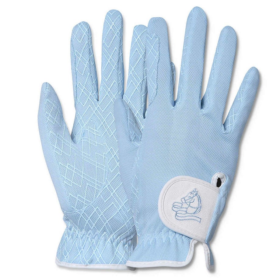 ・クールマックスとUVカットを備えた機能性の高いサマーグローブ高い吸汗速乾機能が手元を涼しく快適に。UVカット機能が手の日焼けをガードします。・伸縮性が高く使いやすい生地さらりとした肌触りで通気性も高く、非常によく伸びるのでとても心地よく使えるグローブです。・手のひら側にはシリコングリップを採用従来の合皮タイプに比べ、グリップ力が高く、ごわつきがなく、伸びやすい素材です。・生地が絡みにくい新型のマジックテープを採用。テープ部分以外には貼り付かないので周りの生地や他の衣類を傷めません。・手綱を握る人差し指や小指廻りは当て布で補強されています。・生地は日本製。国内の大手テキスタイルメーカーが製造した生地です。ソフトな風合いの鹿の子が特徴で多くのスポーツやアウトドア製品に採用されています。