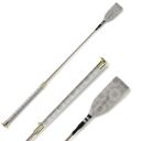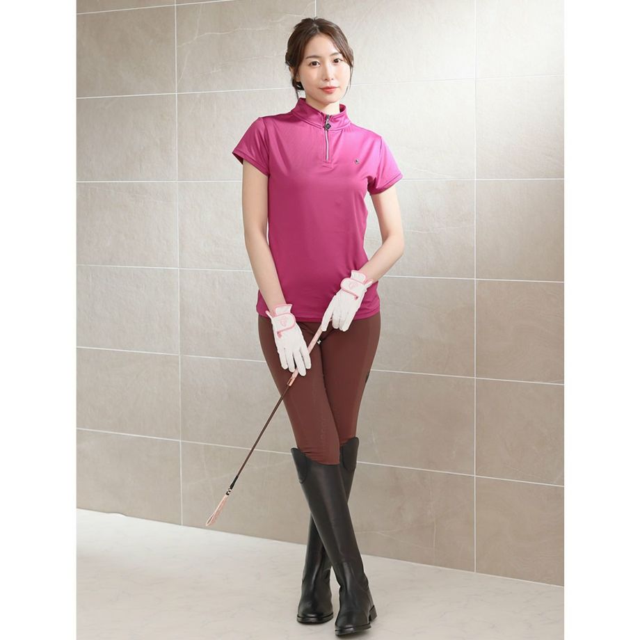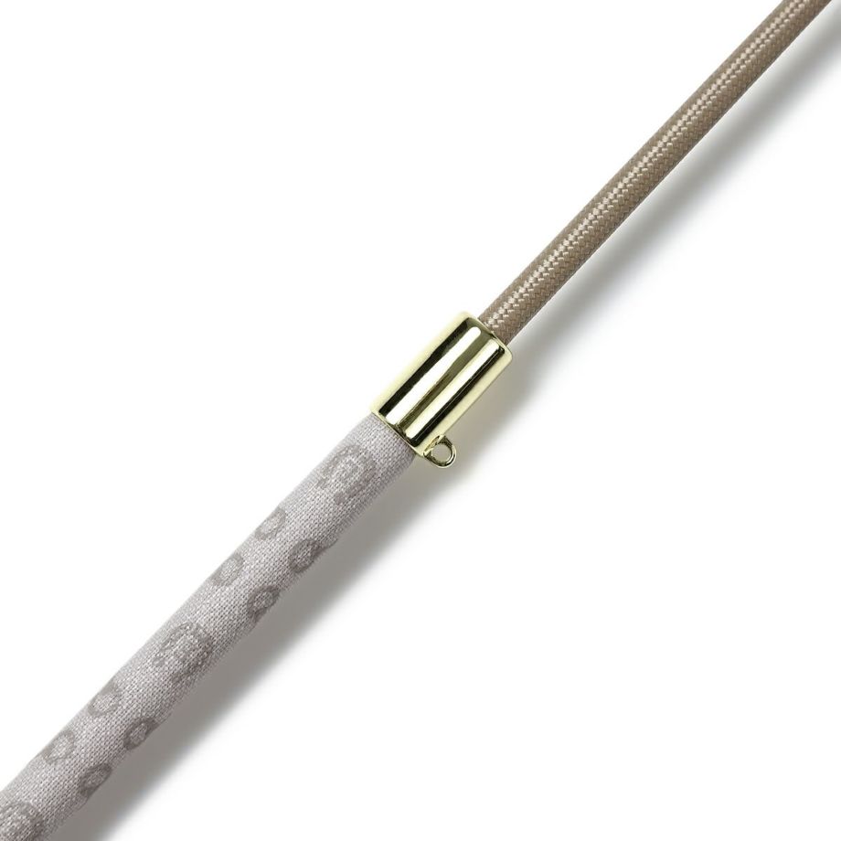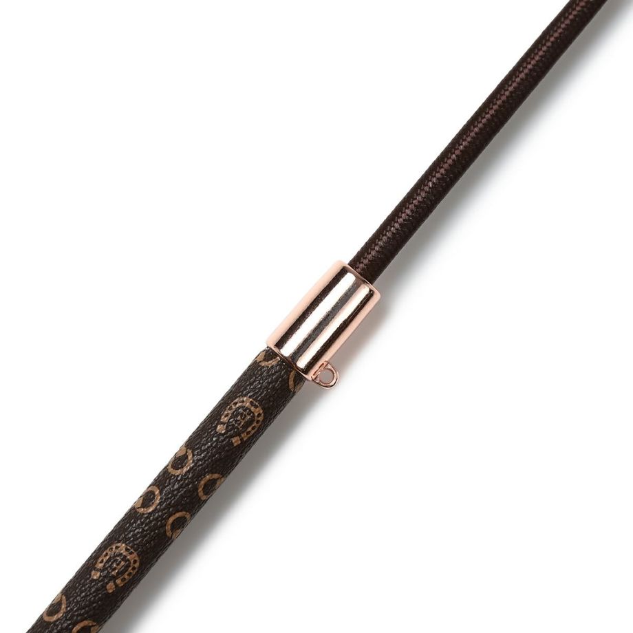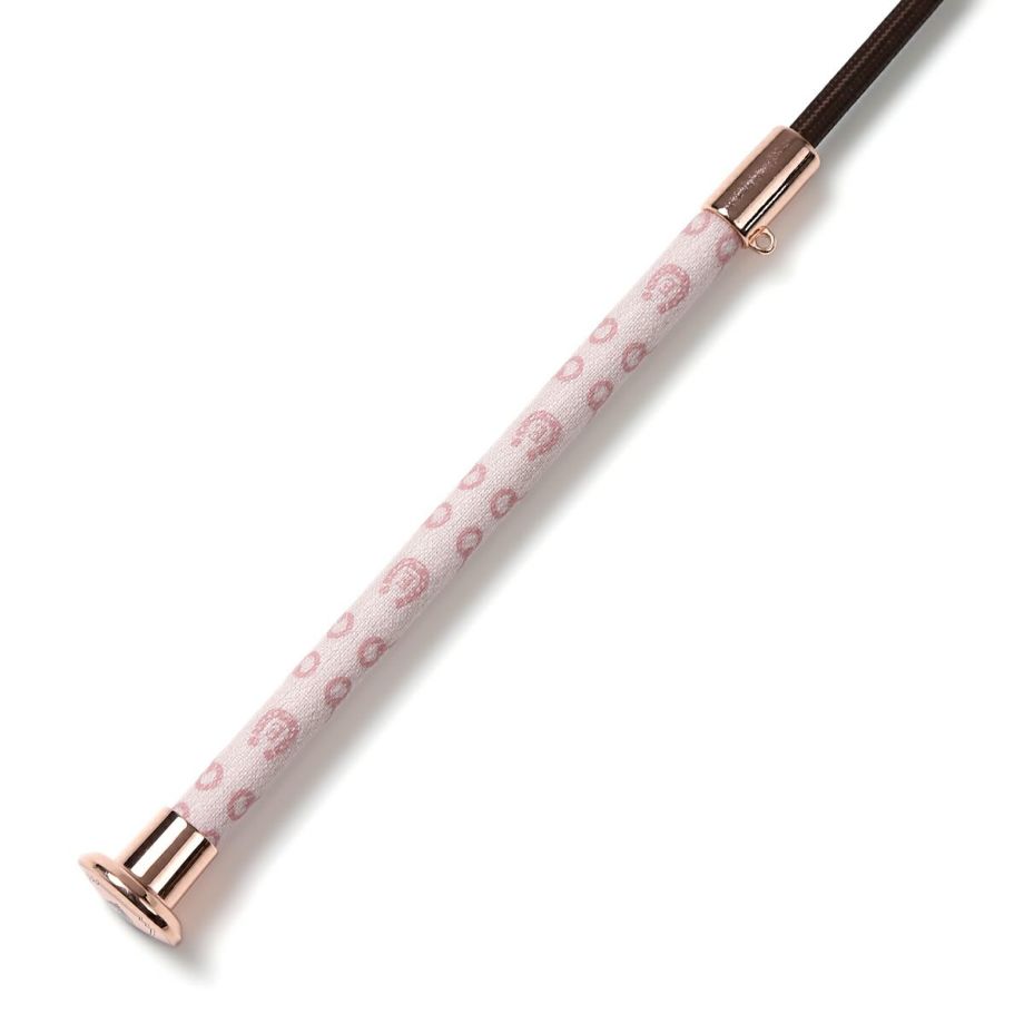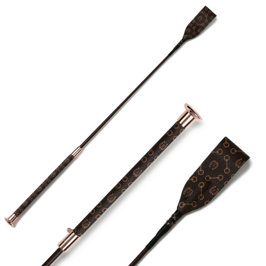 ハミと蹄鉄をあしらったモノグラム柄合皮が目を引く短鞭です。シボ加工を施した高級感のある合皮は丈夫で汚れにくい高機能素材。しなり具合はやや硬めとなります。あまり見かけないデザインだから、クラブでも注目されるかも!?高機能オリジナル生地合皮生地はPVCコートのキャンバス地に革のようなシボ加工を施した高級感のある素材。軽量かつ丈夫で、撥水性や防汚性も備えた高機能な素材です。生地メーカーの協力により実現した日本製オリジナル生地です。グリップにストラップホールがあるのでチャームやキーホルダーでオシャレできます。目印になって、よくあるムチの取り間違え防止にも。JODHPURS ムチ用リストバンドも取り付けしやすいです。