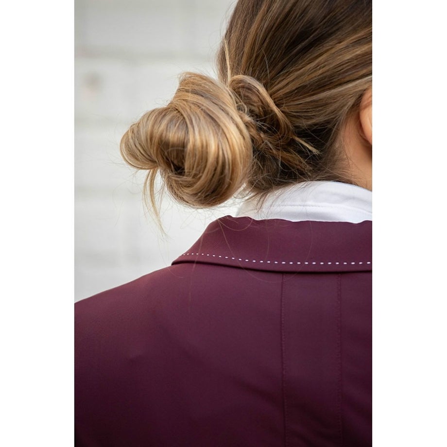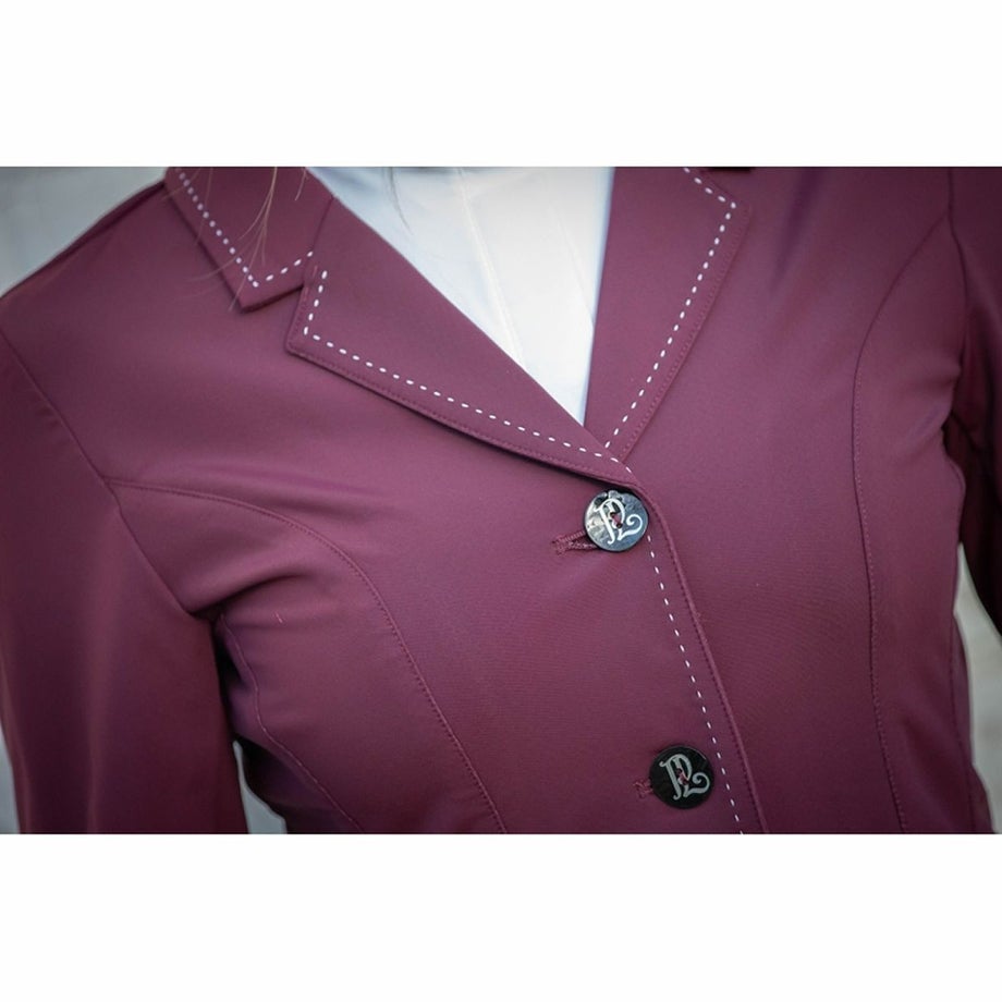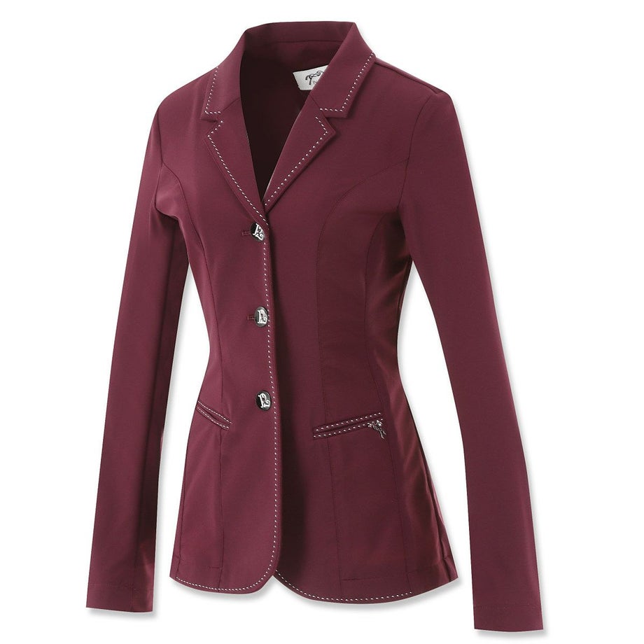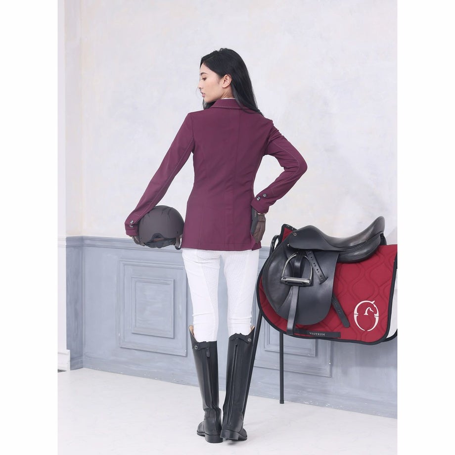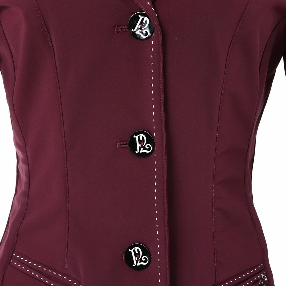 ・いまだかつてないほど軽くてストレッチが効いたテクニカル素材のショージャケット。・上品な発色のプラムがフェミニンな魅力を引きたてます。・ホワイトのステッチを襟や裾、ポケットまわりなどにあしらい、強度と美しさをアップします。・ロゴ刻印入りの美しいシェルのフロントボタン、左のフェイクポケットにあしらったロゴプレートが気品を添えています。・通気性や伸縮性、タフさを兼ね揃えた快適なジャケット。・スタイルをキレイに見せるウエストシェイプのデザイン。・動きやすさをサポートするサイドベンツタイプ。・フェイクポケット:フロント2ヶ所。・ロゴ入りの不織布ジャケットカバー付き。