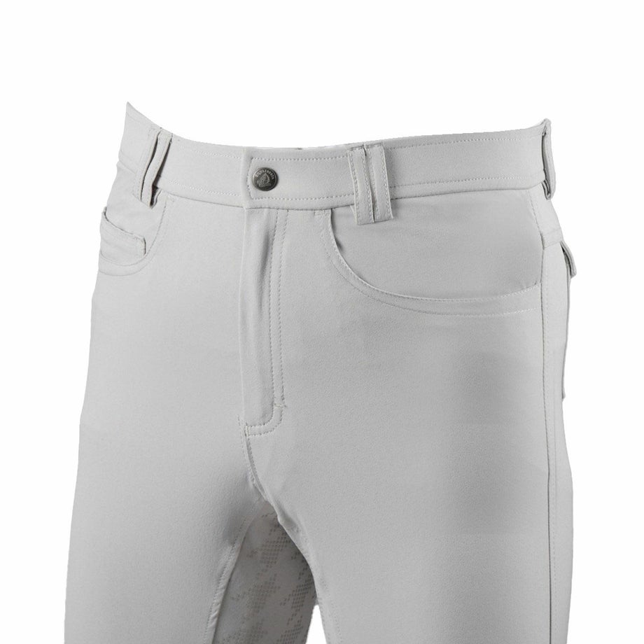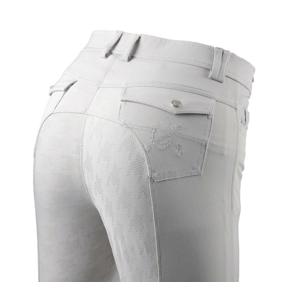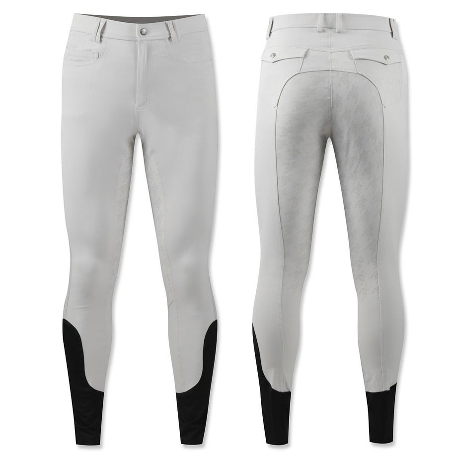 コインポケットやバックポケットのステッチなどデニムっぽさを取り入れながらカジュアルすぎずシンプルで落ち着いた雰囲気。バックポケットのムチ&蹄鉄ステッチがさりげなくオシャレです。通気性が高く肌触りもさらりとした生地だから、暑い夏でも快適。さらに吸水速乾、接触冷感、UVカットなど夏場に役立つ様々な機能を持っています。通気性や吸汗性、グリップ力も高いシリコンタイプなので涼しさと乗りやすさが従来の尻革タイプから大幅にアップしています。・夏の乗馬に快適な涼しさを毎年大好評の夏用キュロット生地を引き続き採用。非常に通気性が高い生地は、汗が蒸発しやすく身体の熱を外に排出します。張りがありさらりとした肌触りの生地は、汗をかいてもベタ付かず快適。ひんやりとした肌触りの接触冷感機能付きです。暑さや汗から開放されて快適に騎乗に集中できるキュロットは、夏のベストパートナーです。・人気のシリコングリップを採用従来の合皮タイプに比べ、グリップ力が大幅に向上し、ごわつきがなく、通気性や吸汗性も高いシリコンタイプは、段違いの使いやすさと履き心地。今まで合皮だった部分が通気性の良い生地になったので、涼しさも大幅にUPしました。シリコンプリントは英国伝統のハウンドトゥース柄。エレガントでクラシックな印象のデザインです。シリコンはグリップが効きすぎると逆に使いにくくなることもあります。本製品では様々なシリコン形状をテストして、ちょうど良いグリップに調整しました。・日本人の騎乗姿勢にあったデザインウエストのフロントが浅くバックが深いデザインは、騎乗時の座り込んだ姿勢でウエストをきっちりカバーします。生地の特性を考慮して熟練パタンナーがデザインしたキュロットは、姿勢の美しさと動きやすさを両立しました。・高い縫製技術を活かしたフィット感生産はヨーロッパ向けキュロットを手がけるメーカーが協力。長年培われた技術が活かされた縫製は耐久性とフィット感が抜群です。・素材へのこだわり生地やボタンなど全ての素材にこだわりました。ボタンは騎乗に適したものをドイツから取り寄せ。生地は専門機関で百貨店並みの厳しい試験に合格したものです。