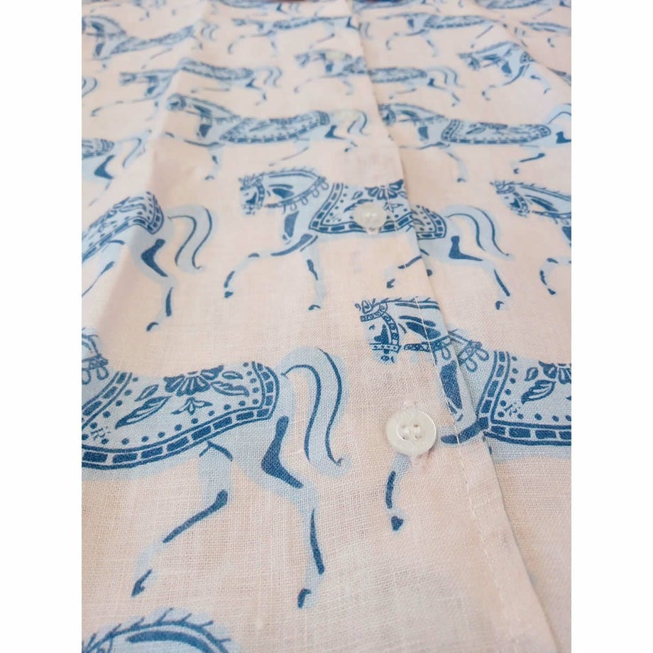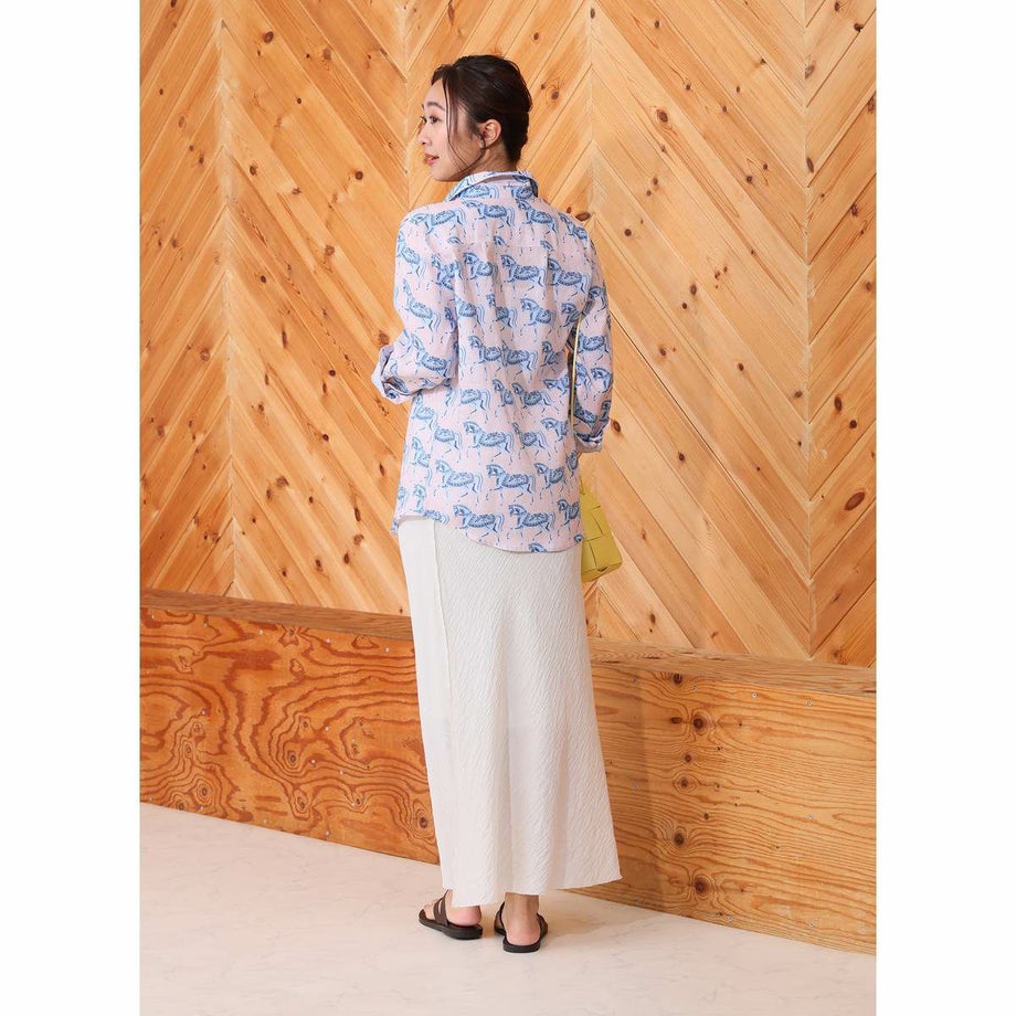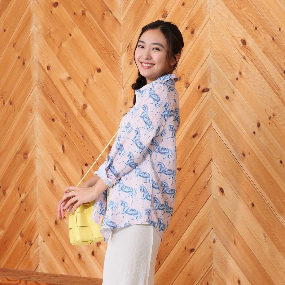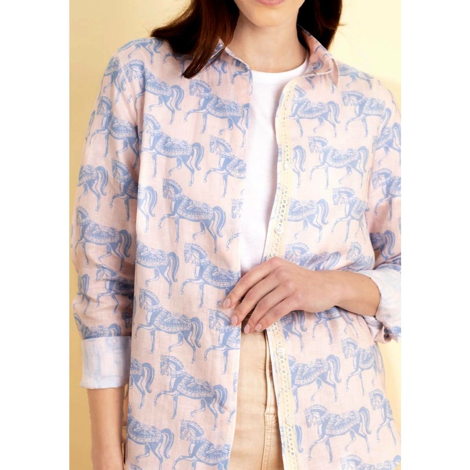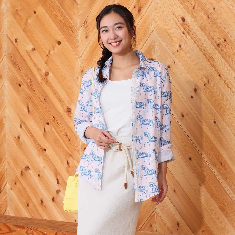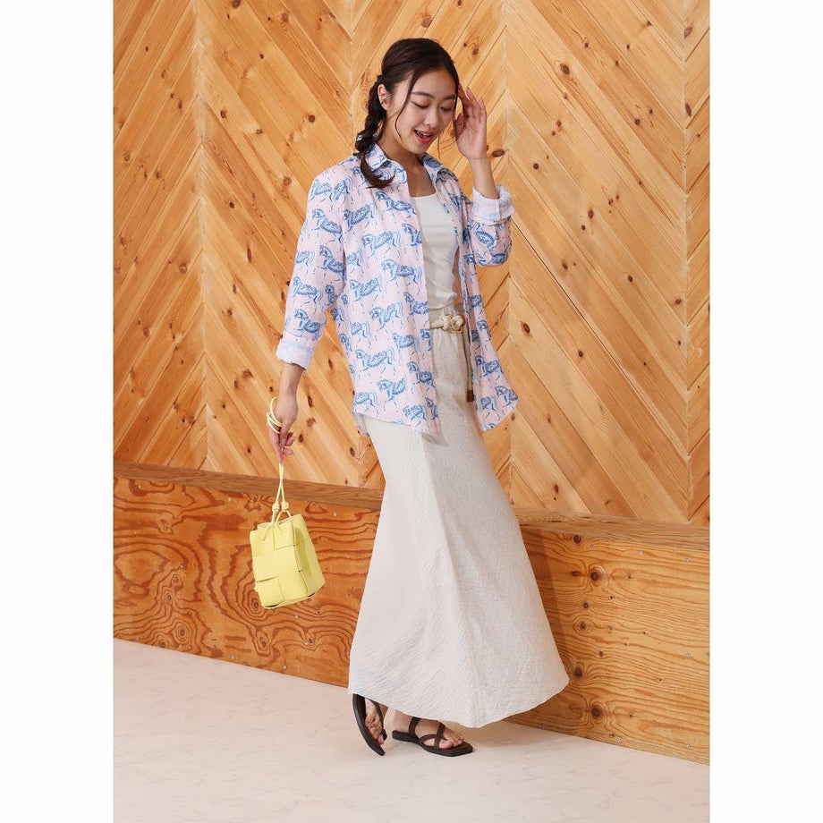 ・毎年人気の定番リネンシャツが新しいプリントとカラーで今年も登場!・通気性抜群の100%天然リネン製で暑い季節も涼しく快適。・どんなコーディネートにも合わせやすいタイムレスなデザイン。・ボタンフロントの繊細なレース装飾デザインが、さりげない個性を演出。・リラックス感のあるルーズフィットで夏の様々なシーンに最適。・馬術にインスパイアされた手描き風プリントが魅力。・涼しい夏はもちろん、季節の変わり目にも長く愛用できる一枚。・専用ファブリックケースでお届け。