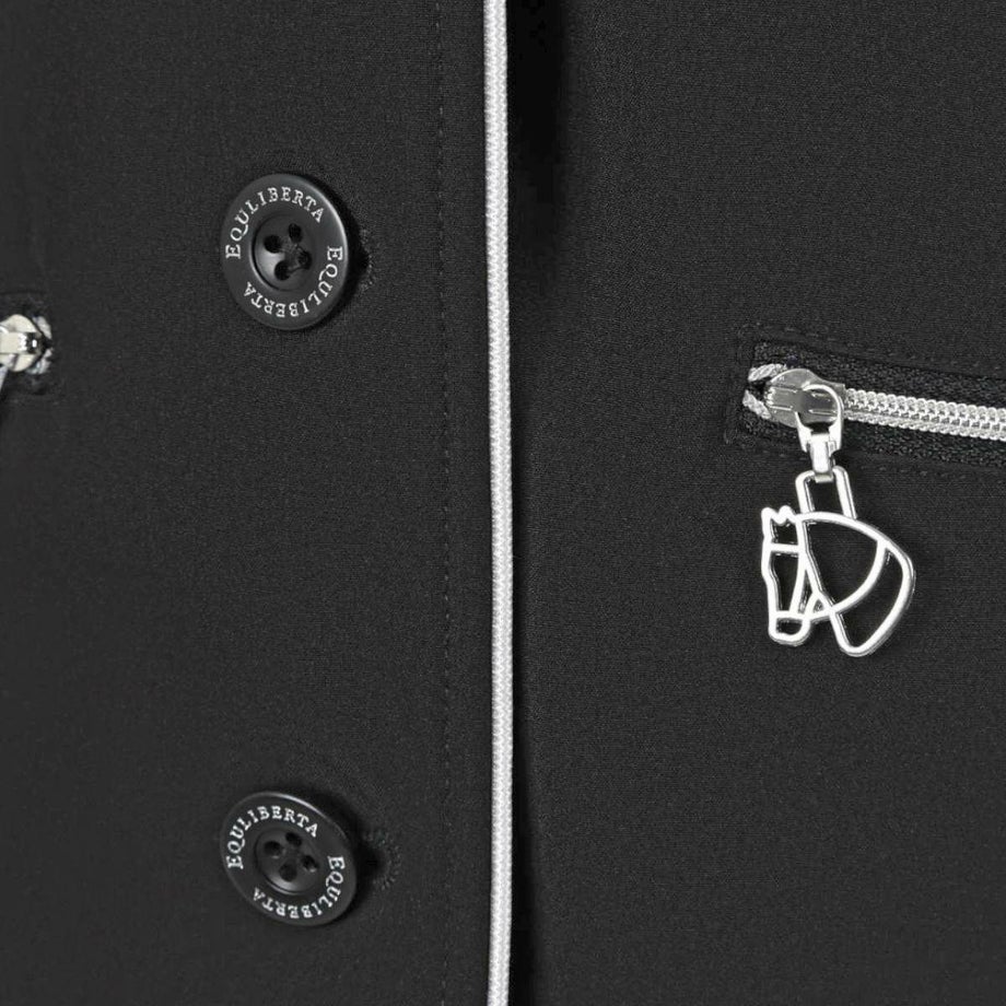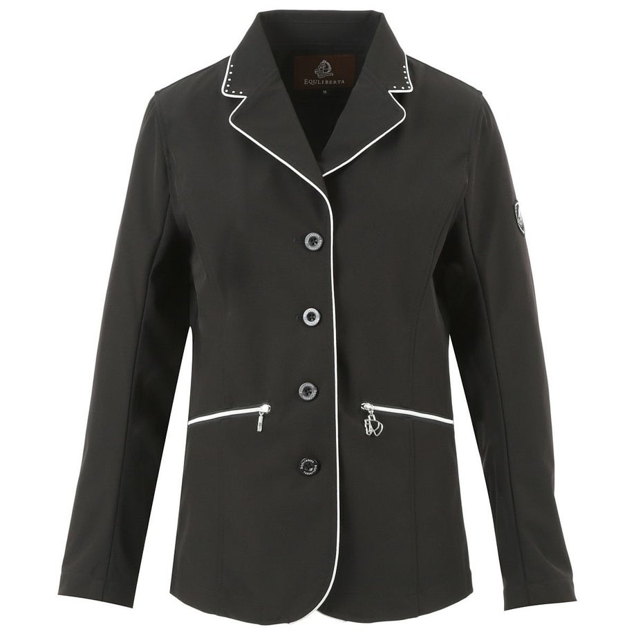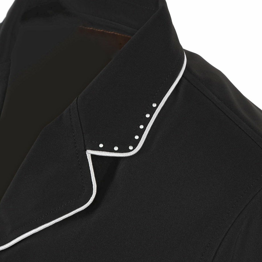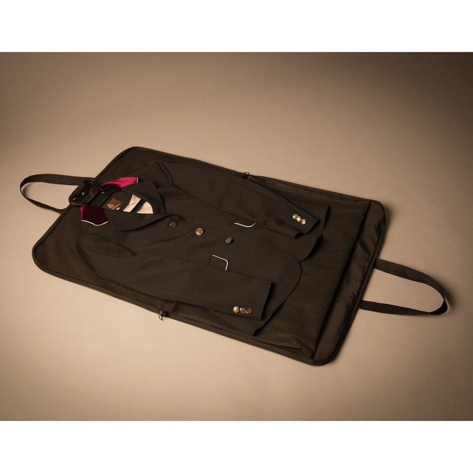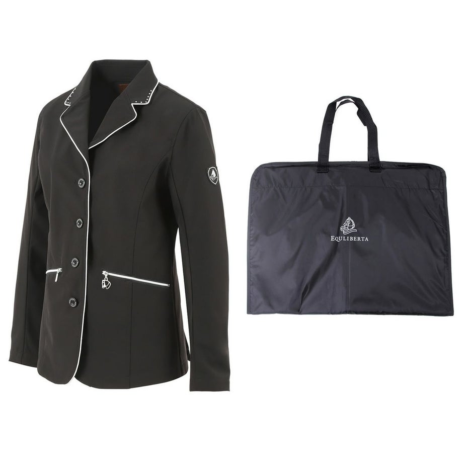 【ショージャケット】・ハイスペックなプライムテックソフトシェル生地を使用した乗馬用のショージャケット。撥水・透湿・防風・防汚、防花粉・2wayストレッチ・UVガードを備えたプライムテックソフトシェル生地を素材にセレクト。日本人の体格に合いやすくデザインされたショージャケットは着る人をより美しい姿へと導きます。動きやすく、騎乗姿勢を綺麗に見せるシルエットにこだわり、オリジナルのボタンやポケットのチャームなど細部にまでこだわったエレガントなデザインです。・動きやすさを追求肩口から袖が前方に流れているデザインを採用し、騎乗時の腕・肩周りの窮屈さを軽減しました。縦にも横にも伸びる2WAYストレッチなのでフィット感もバツグンです。・オールシーズン快適な着心地このアイテムのために開発された独自の高機能ソフトシェルファブリックを採用。雨の日には撥水、寒い冬でも防風で体温を保持、暑い夏でも通気性を確保するオールシーズン対応。・撥水機能多少の雨や雪なら気にせず騎乗できます。・透湿湿気を外に逃がす生地なので汗をかいても快適。・防風防風効果のある生地だから、冬場の騎乗でもしっかり保温されます。・防汚、防花粉汚れにくい生地でメンテナンスもらくちん。ご家庭での洗濯もOK。花粉もつきにくいので花粉症の方にもおすすめです。・UVカットUPF50+の紫外線ガード機能。馬場の日差しから肌を守ります。・騎乗に最適化されたシルエット生地の特性を考慮して熟練パタンナーがデザインしたショージャケットは、姿勢の美しさと動きやすさを両立しました。・素材へのこだわり使用する生地はこの商品のためにオリジナルで製造したもので、国内の専門機関での厳しい試験に合格したものです。【ジャケットキャリーバッグ】・ジャケットから丈の長い燕尾服まで収納できるガーメントバッグ。・三つ折りなのでコンパクト。試合場への持ち運びも楽々。・表側の丈夫なポリエステルが衣類を保護。裏側の不織布は通気性抜群で湿気を逃がします。・2層構造の生地が大事な衣類を最適な状態に保ちます。持ち運びにも、保管にも。マルチに使える便利バッグ。・専用ハンガー付き。