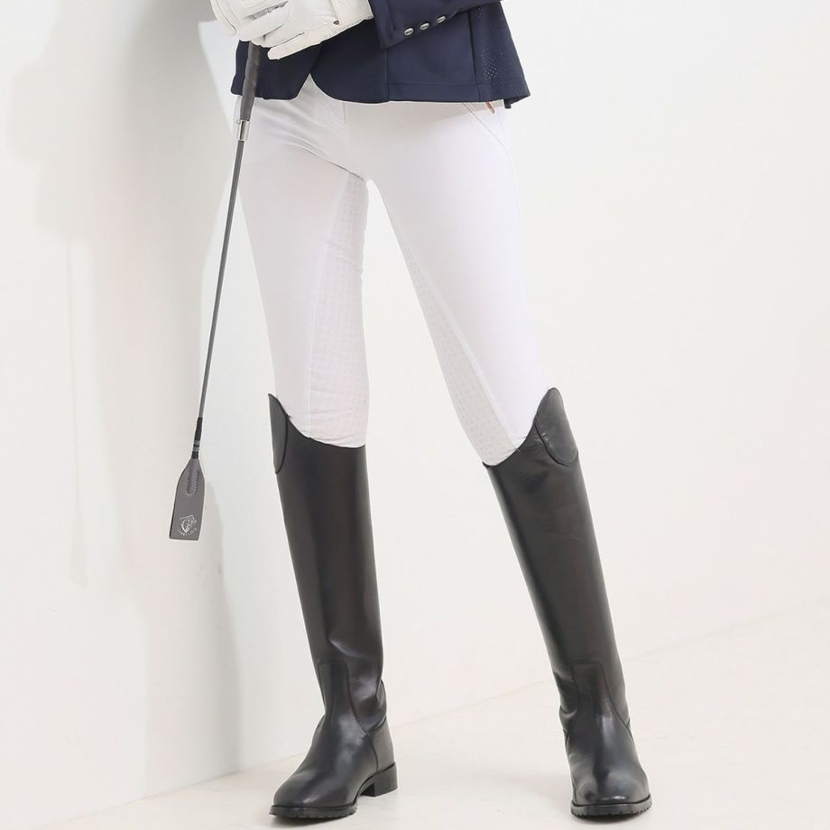 ・ピンクゴールドの煌めきで華やかに仕上げた乗馬用のキュロットフルグリップ。・ジップやクリスタル、ステッチのピンクゴールドがアクセント。・高い伸縮性を誇るテクニカルファブリックは通気性もよく快適です。・すべりにくく、取れにくいシリコングリップを採用。・足首周りは伸縮性のあるストレッチ素材で着脱がスムーズ。・ジップ付きポケット:フロント2ヶ所、バック2ヶ所、計4ヶ所