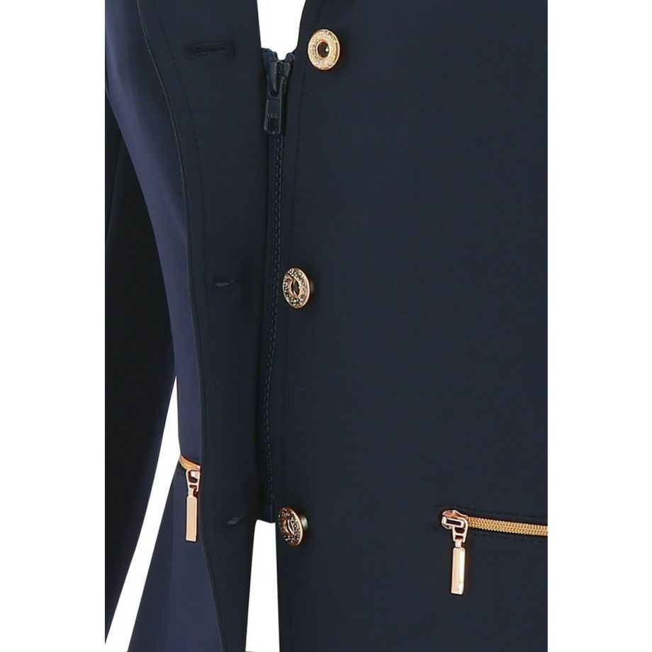 ・軽くて快適な乗馬用のショージャケット。・アクセサリーのようなローズゴールドのジップやボタンが華やかさを添えます。・襟元にはローズゴールドのステッチをあしらうなど、細部にまでこだわっています。・ストレッチが効いた軽くて質感のよい素材。・フロントはジップとボタンでしっかりと閉じることができます。・ジップ付きのポケット:フロント2ヶ所。・サイドベンツ。・深みのあるブラックとネイビーの2色展開。