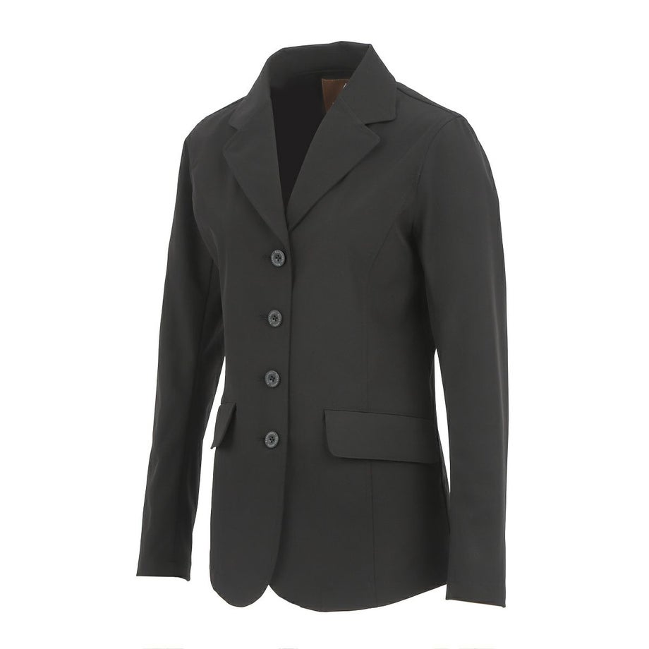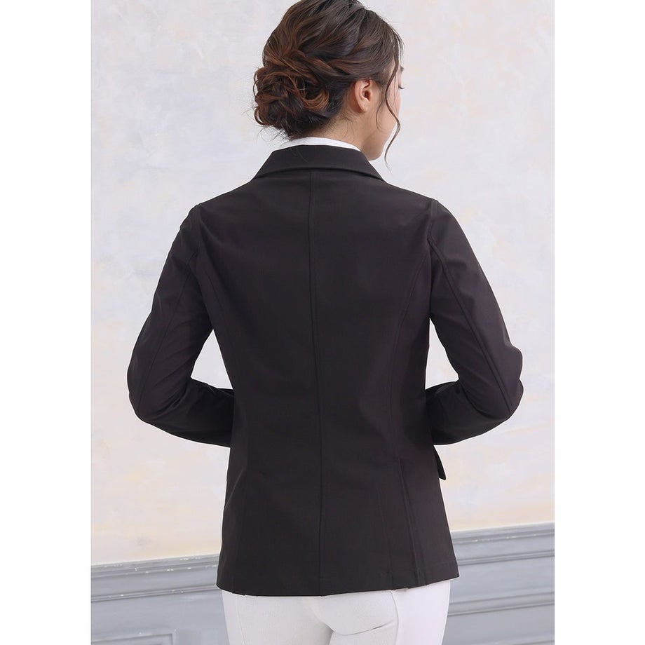 ・高機能で人気が高いソフトシェル素材の乗馬用ショージャケット。・ストレッチ性があり、フィット感がいいのはもちろん、UPF50+、撥水機能なども備え、あらゆる天候下での騎乗にマッチします。・ムダをそぎ落としたシンプルなジャケットは、動きやすさと美しくクラシックなシルエットにこだわっています。・幅広いサイズ展開なのでピッタリのサイズをお選びいただけます。・ポケット:フロント2ヶ所。・袖口にボタンがないタイプなのでボタンの干渉や落下の心配がありません。・動きやすさを追求肩口から袖が前方に流れているデザインを採用し、騎乗時の腕・肩周りの窮屈さを軽減しました。縦にも横にも伸びる2WAYストレッチは、動きやすくてフィット感抜群です。・オールシーズン快適な着心地競技用ジャケットのために開発された独自の高機能生地プライムテックソフトシェルを採用。雨や雪の日には撥水、寒い冬でも防風で体温を保持、暑い夏でも通気性を確保するオールシーズン対応。・撥水機能多少の雨や雪なら気にせず騎乗できます。・透湿湿気を外に逃がす生地なので汗をかいても快適。・防風防風効果のある生地だから、冬場の騎乗でもしっかり保温されます。・防汚、防花粉汚れにくい生地でメンテナンスもカンタンです。ご家庭での洗濯もOK。花粉もつきにくいので花粉症の方にもおすすめ。・UVカット紫外線カット機能により、馬場の日差しから肌を守ります。・騎乗に最適化されたシルエット生地の特性を考慮して熟練パタンナーがデザインしたショージャケットは、姿勢の美しさと動きやすさを両立しました。・素材へのこだわり使用する素材は国内の専門機関で百貨店並みの厳しい試験に合格したものを採用しました。※フロントの合わせは、レディースサイズは右前(ボタン4つ)、ジュニアサイズは左前(ボタン3つ)です。