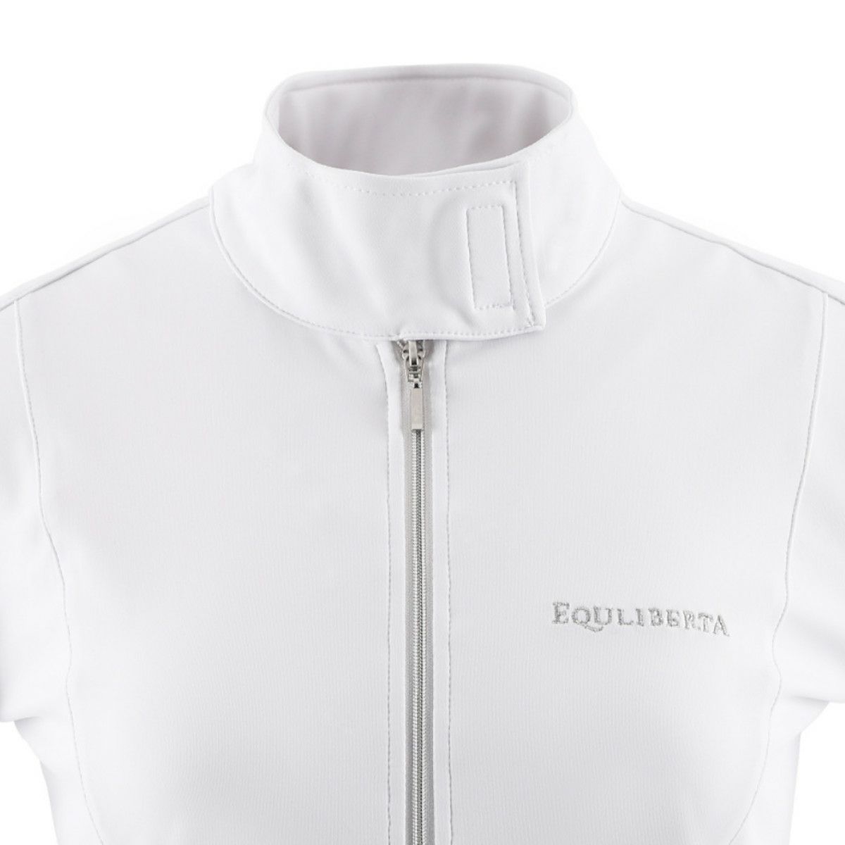 ・競技会でもレッスンでも活躍する快適な半袖のショーシャツ。ハイグレードな機能素材を採用したスポーティなショーシャツ。自在に伸びる2wayストレッチなので動きやすく、なめらかな肌当たりと吸湿速乾性のよさで着心地を向上。競技会だけではなくレッスンにもオススメです。首元のファスナーをカバーしたハイドネックタイプです。・シルクのようになめらかな肌ざわり。・吸水速乾素材。体から汗を吸い上げ素早く蒸発させ、ドライな状態をキープします。・通気性が高く汗や熱がこもりません。・薄手で軽量ながらもしっかりした生地です。・激しい動作でも動きやすい2WAYストレッチ素材。・ハーフジップのフロントで着脱もスムーズ。・日本人の騎乗姿勢に合わせたデザインなので体にフィットしつつも動きやすい。・ゴルフ・テニス・ジョギングなど乗馬以外のスポーツにも最適です。